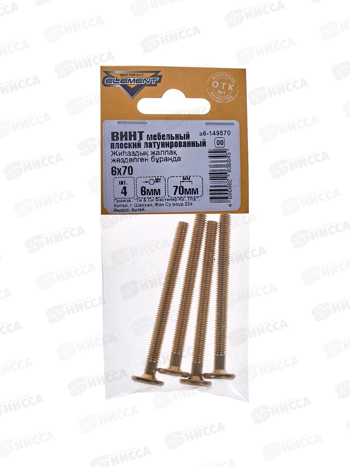 Винт мебельный плоский М6 70мм латунированный (4шт)