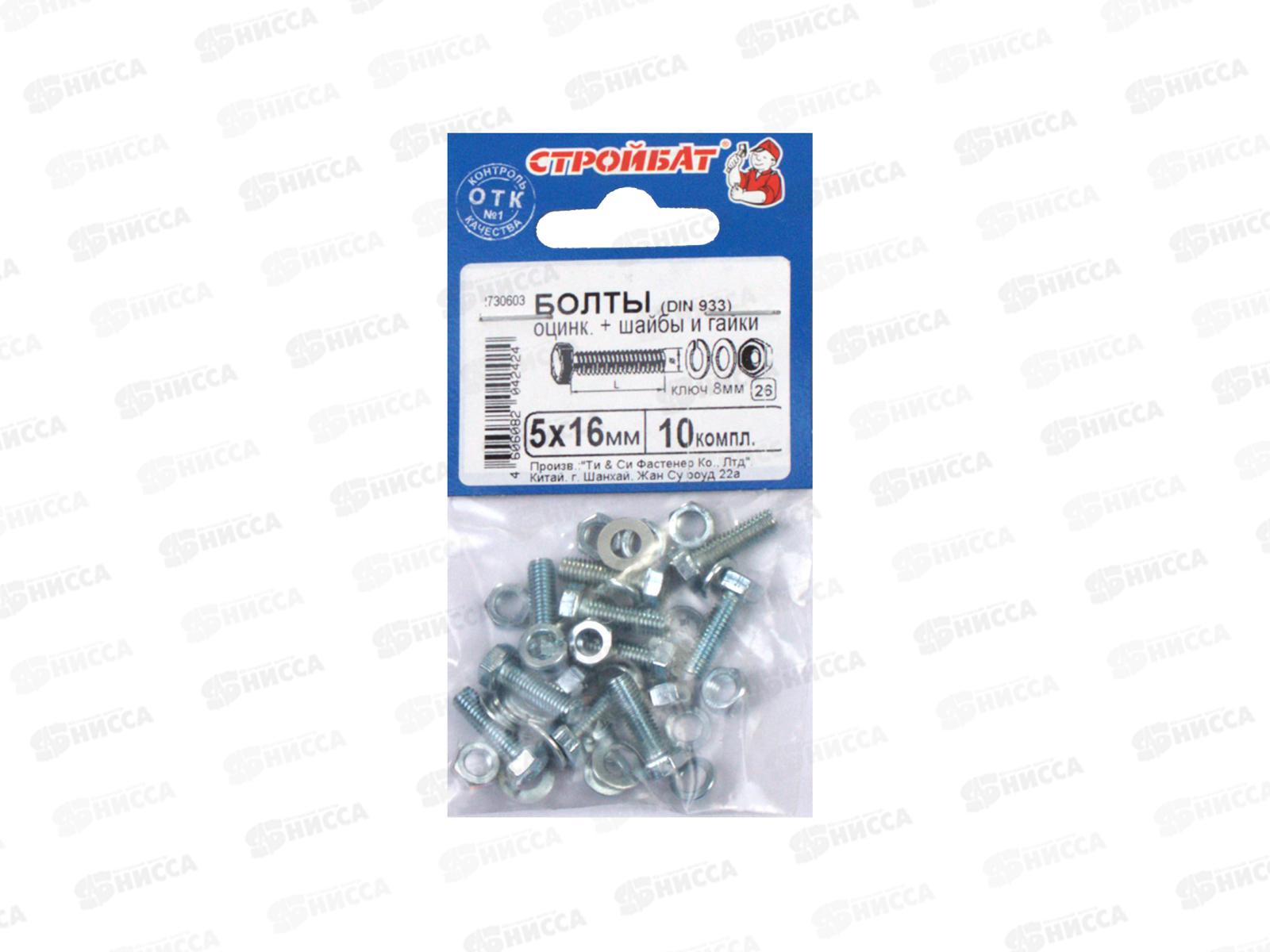 Код:442422; Болты DIN 933 М 5x16 с гайками и шайбами (белый цинк 10шт) *50