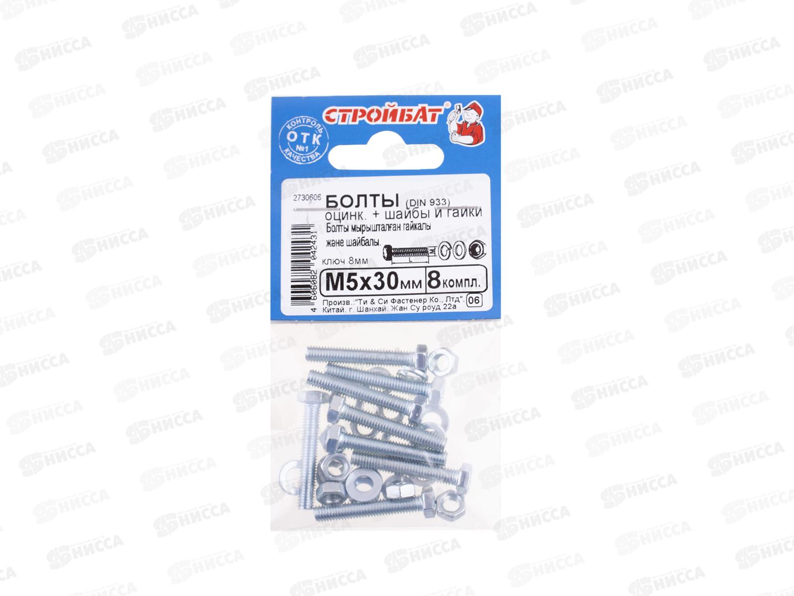 Код:442423; Болты DIN 933 М 5x30 с гайками и шайбами (белый цинк 8шт) *50