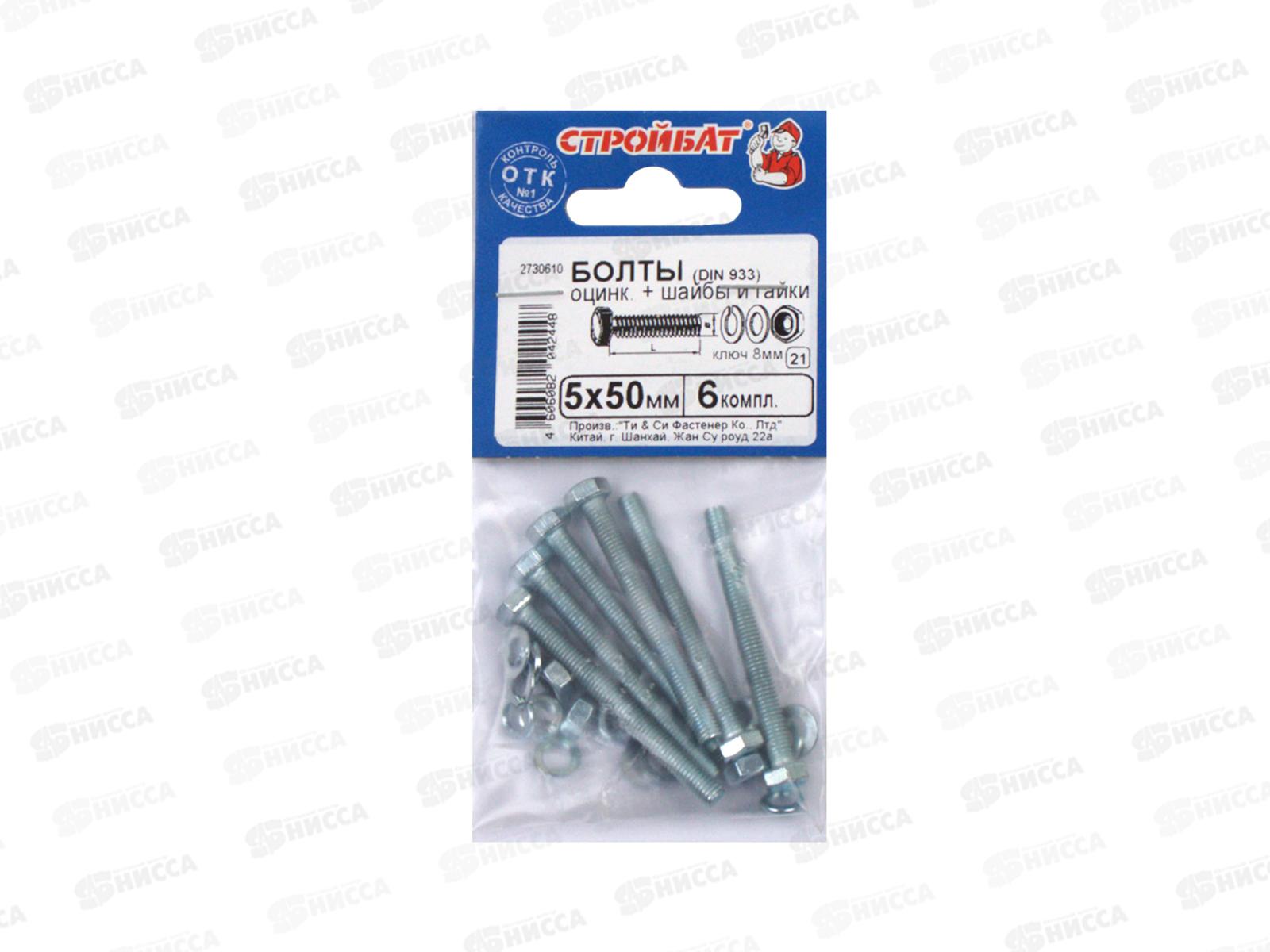 Код:442429; Болты DIN 933 М 6x50 с гайками и шайбами (белый цинк 6шт) *40