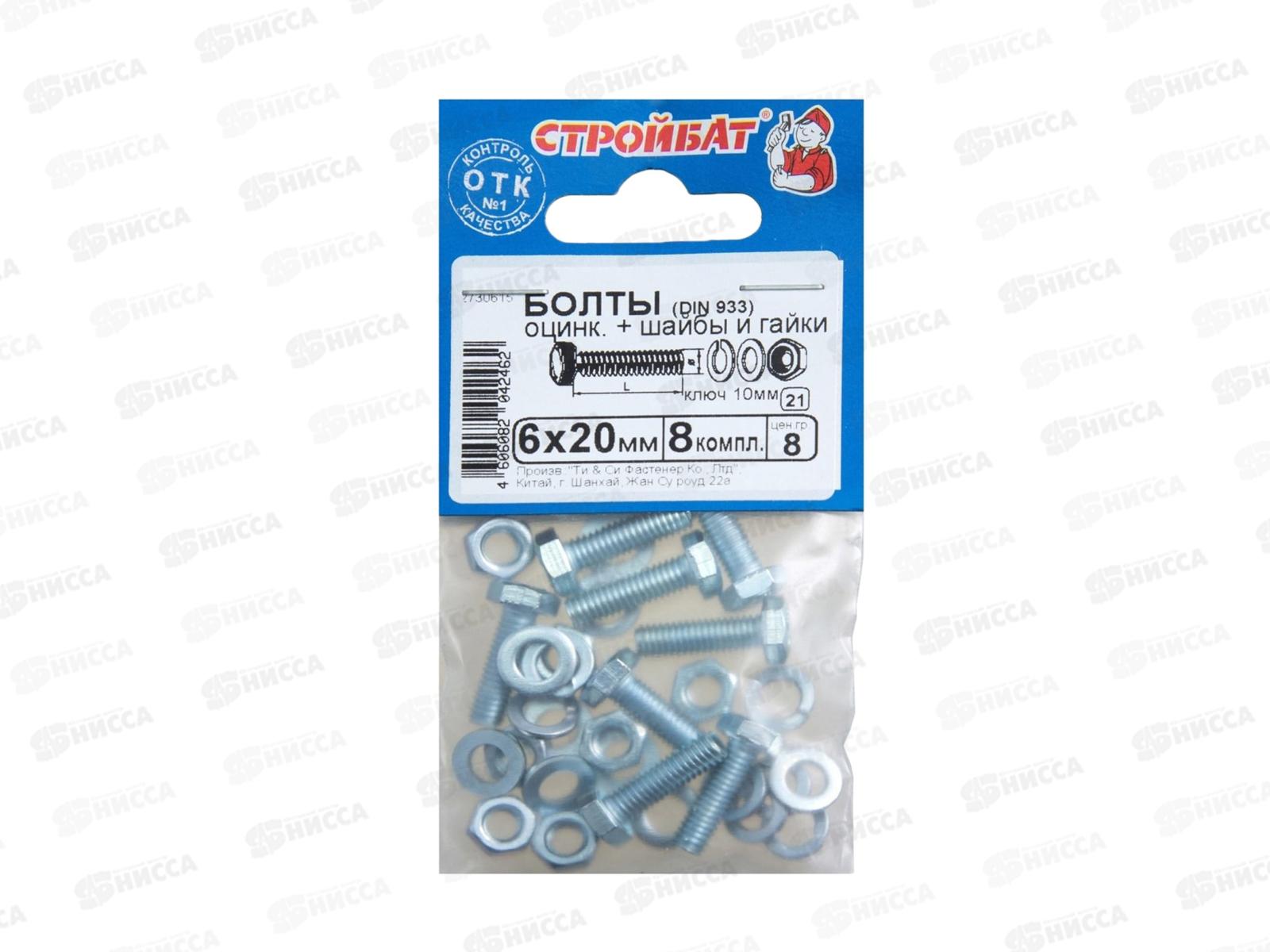 Код:442426; Болты DIN 933 М 6x20 с гайками и шайбами (белый цинк 8шт) *40