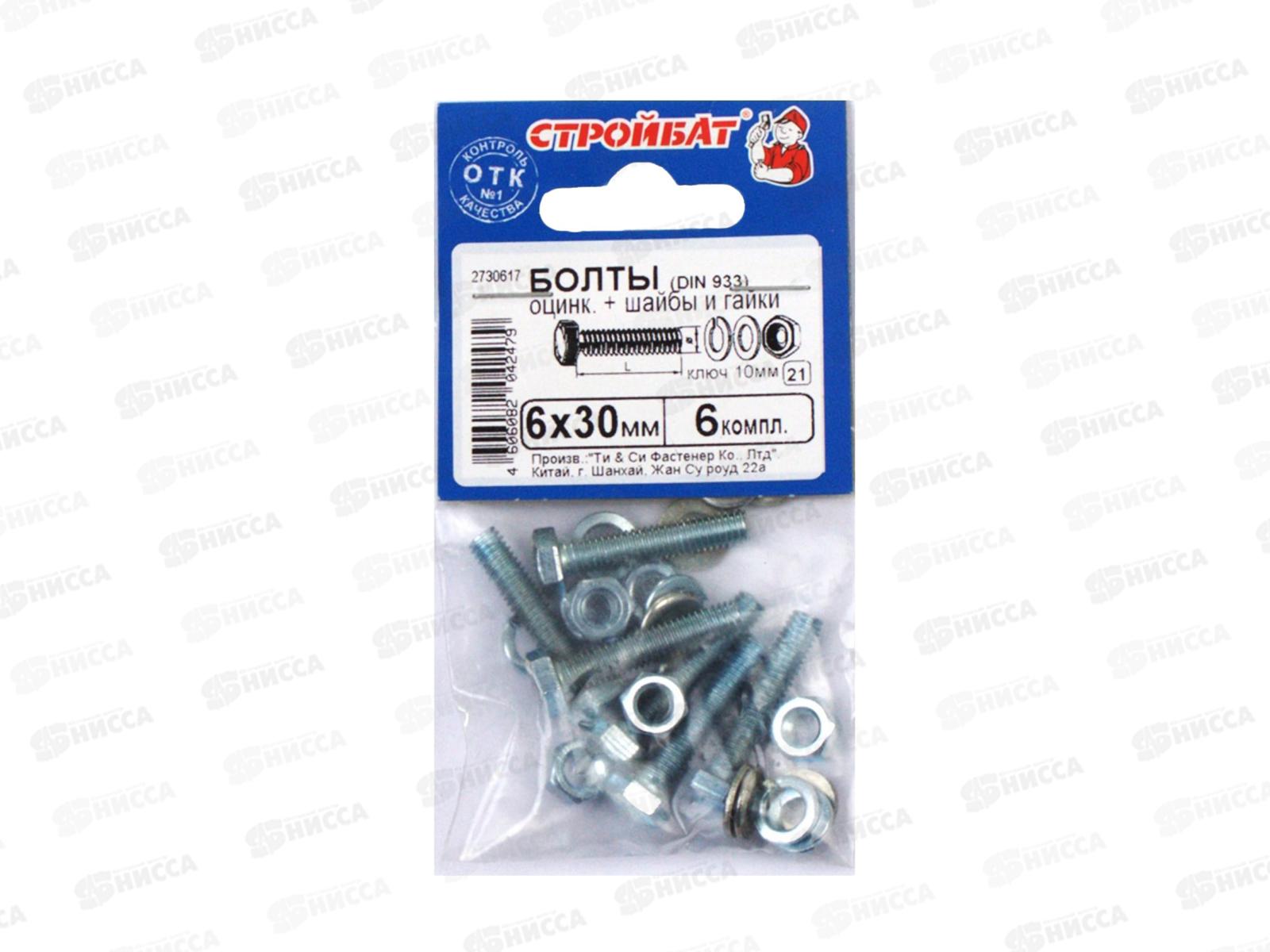 Код:442427; Болты DIN 933 М 6x30 с гайками и шайбами (белый цинк 6шт) *40