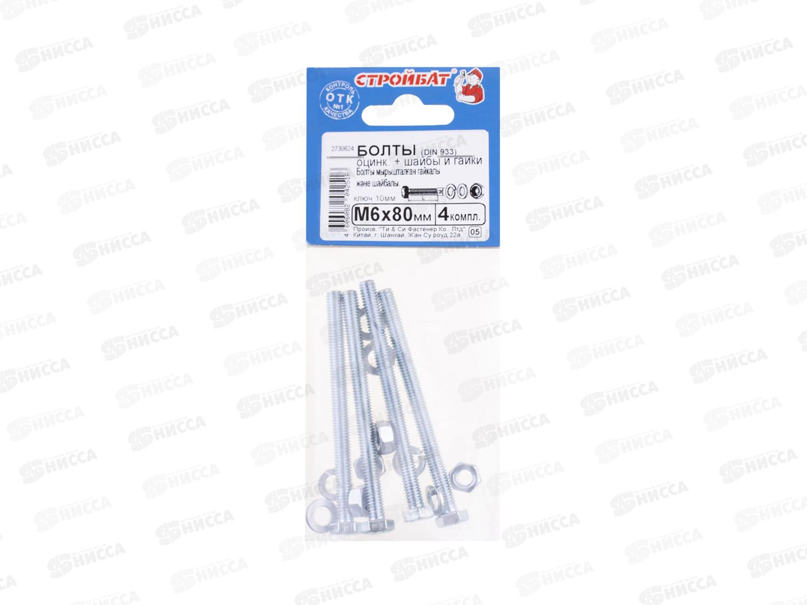 Код:442431; Болты DIN 933 М 6x80 с гайками и шайбами (белый цинк 4шт) *40