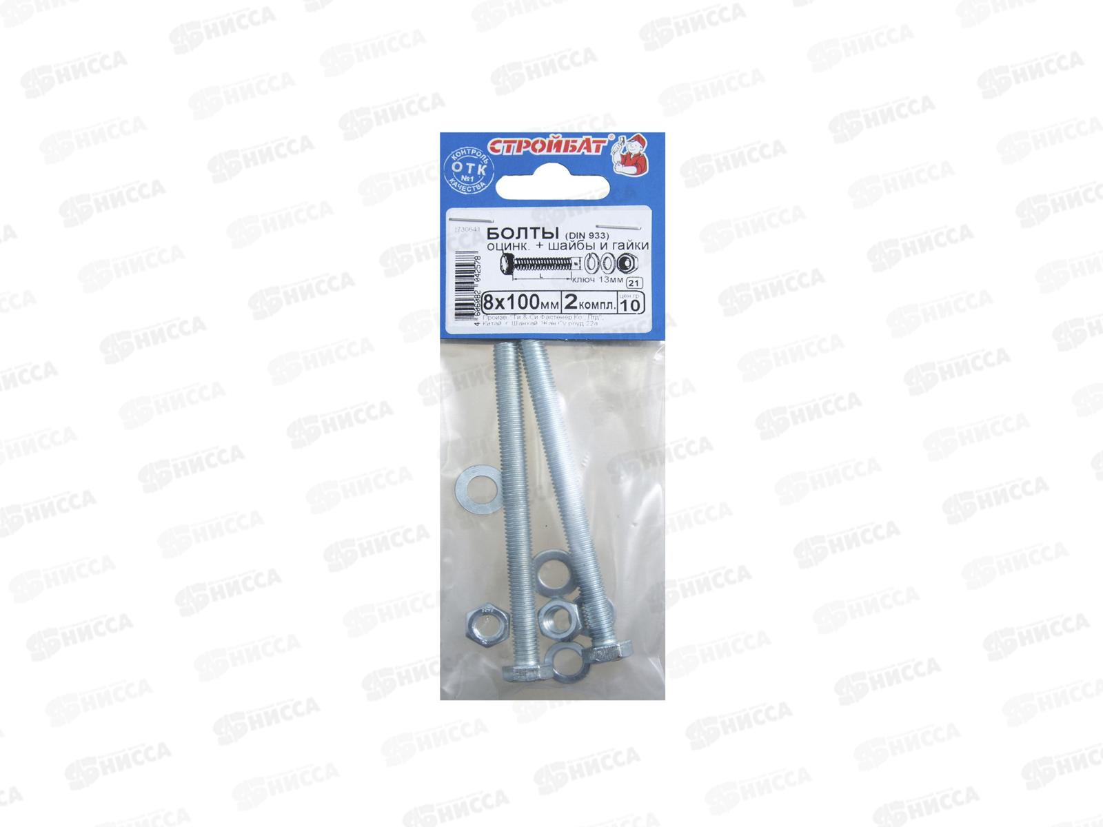 Код:442437; Болты DIN 933 М 8x100 с гайками и шайбами (белый цинк 2шт) *30