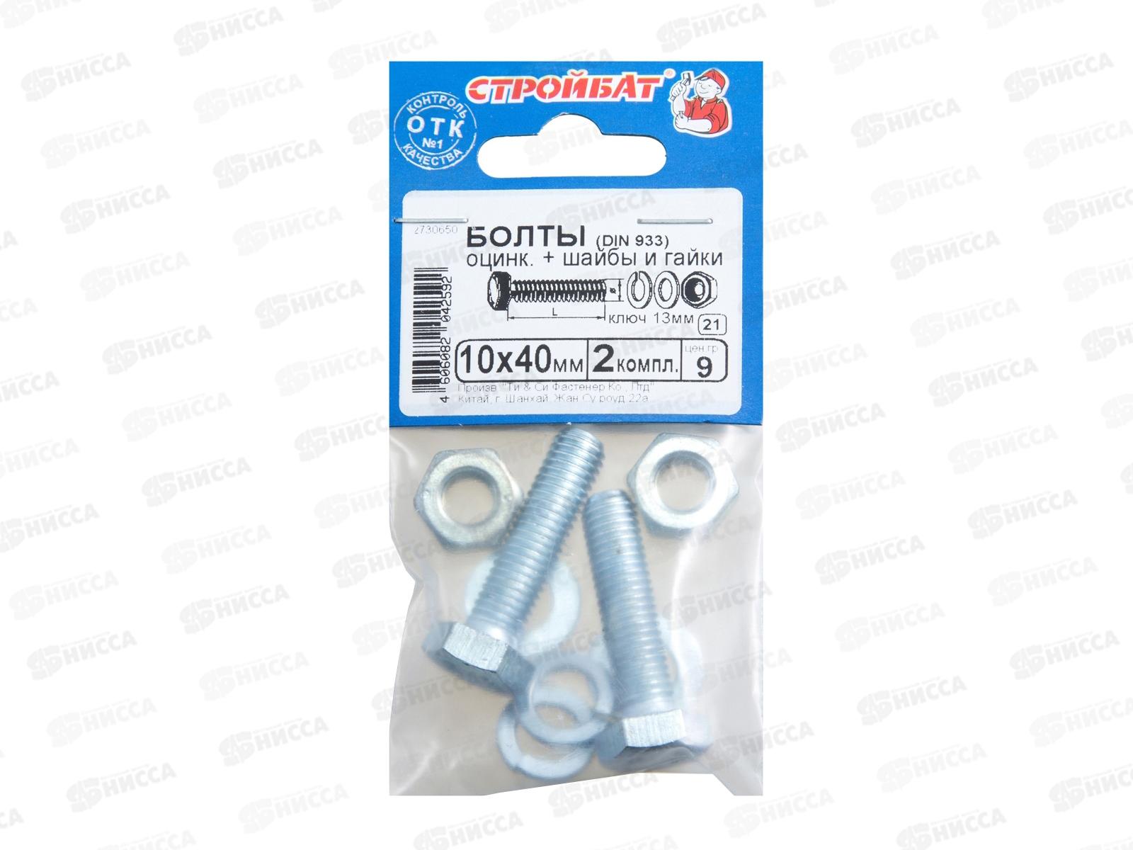 Код:442439; Болты DIN 933 М10x40 с гайками и шайбами (белый цинк 2шт) *40