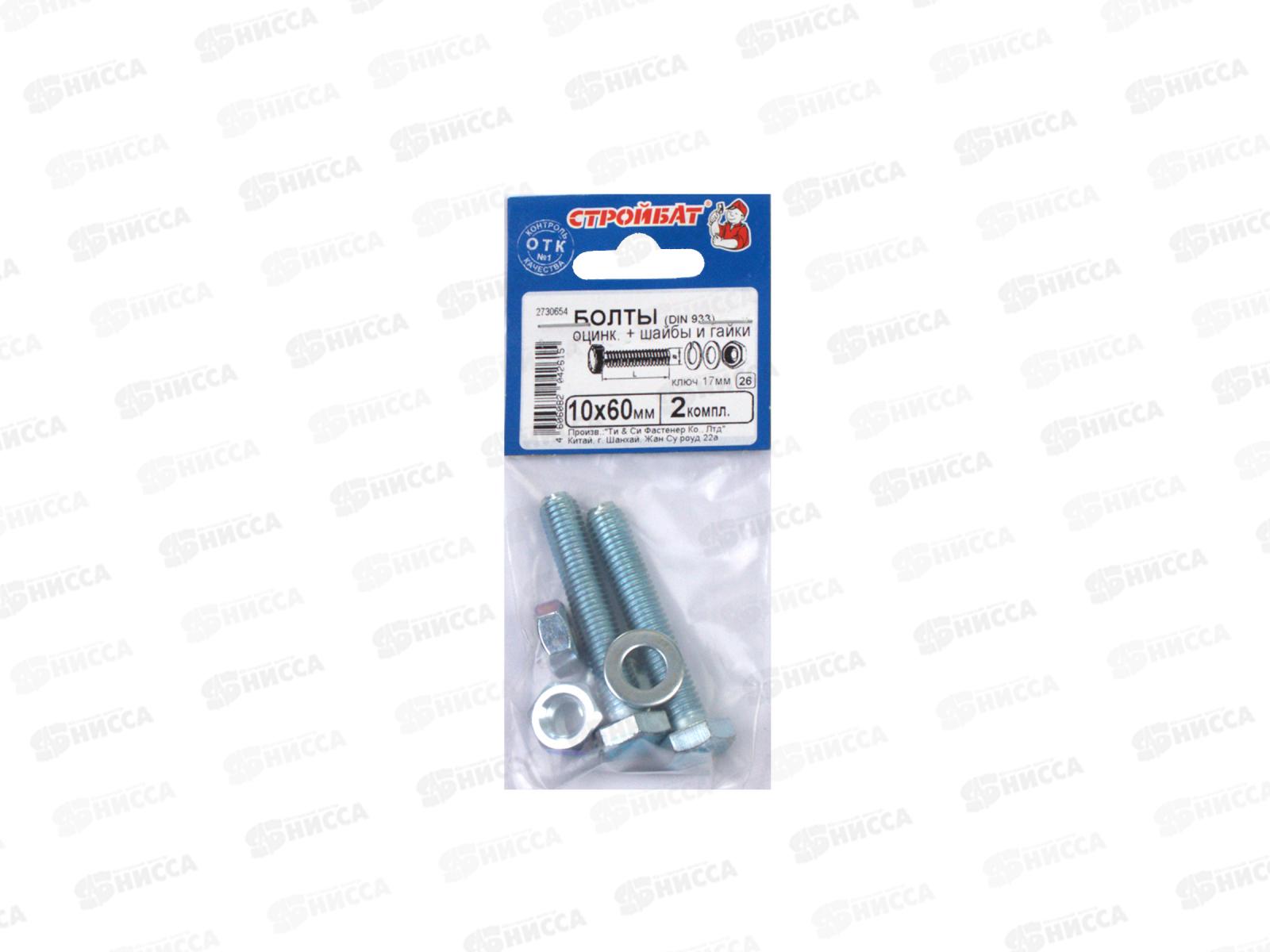 Код:442441; Болты DIN 933 М10x60 с гайками и шайбами (белый цинк 2шт) *40