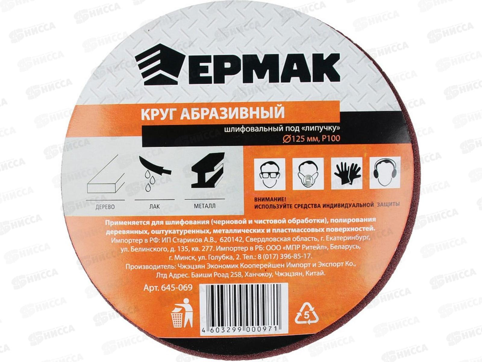 Код:056337; Круг абразивный шлифовальный под "липучку" 125мм Р100 10шт 645-069 г