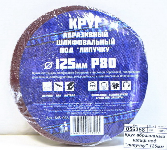 Код:056358; Круг абразивный шлифовальный под "липучку" 125мм Р80 10шт г 645-068