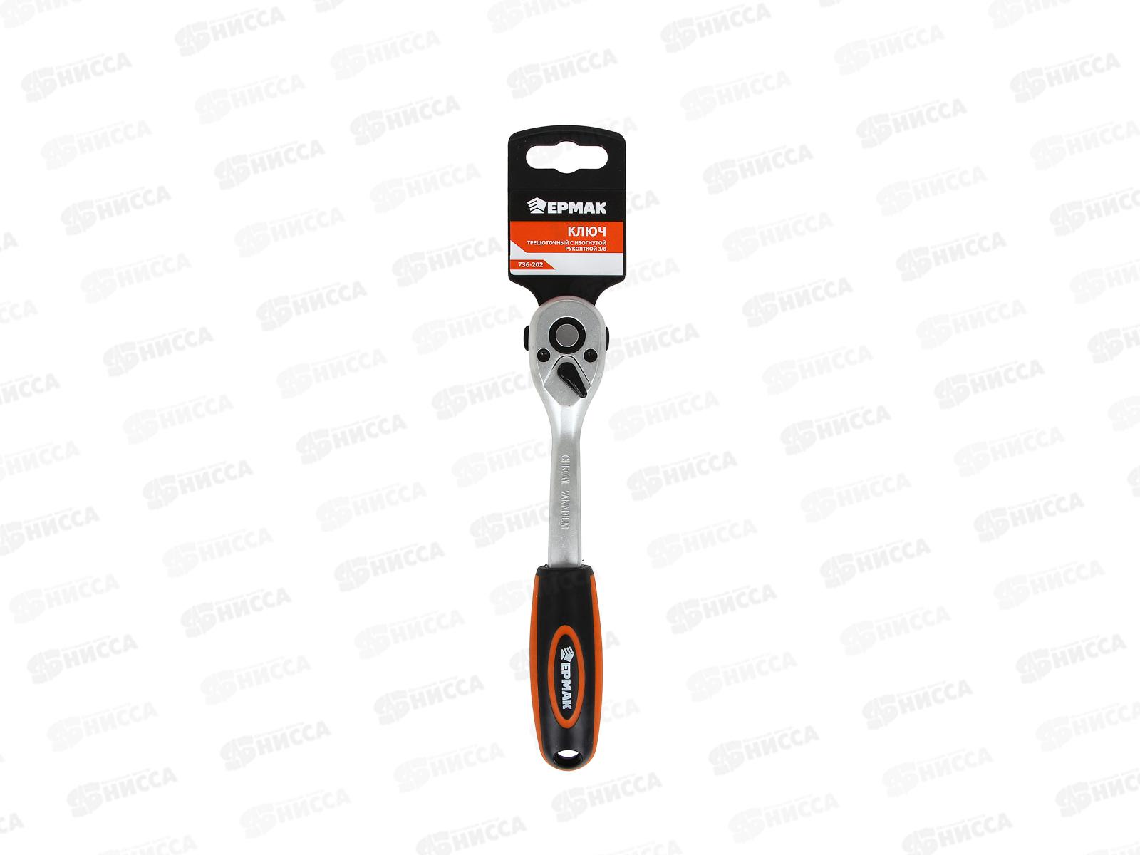 Код:446500; Ключ трещоточный 3/8" изогнутая рукоять ЕРМАК 736-202 г