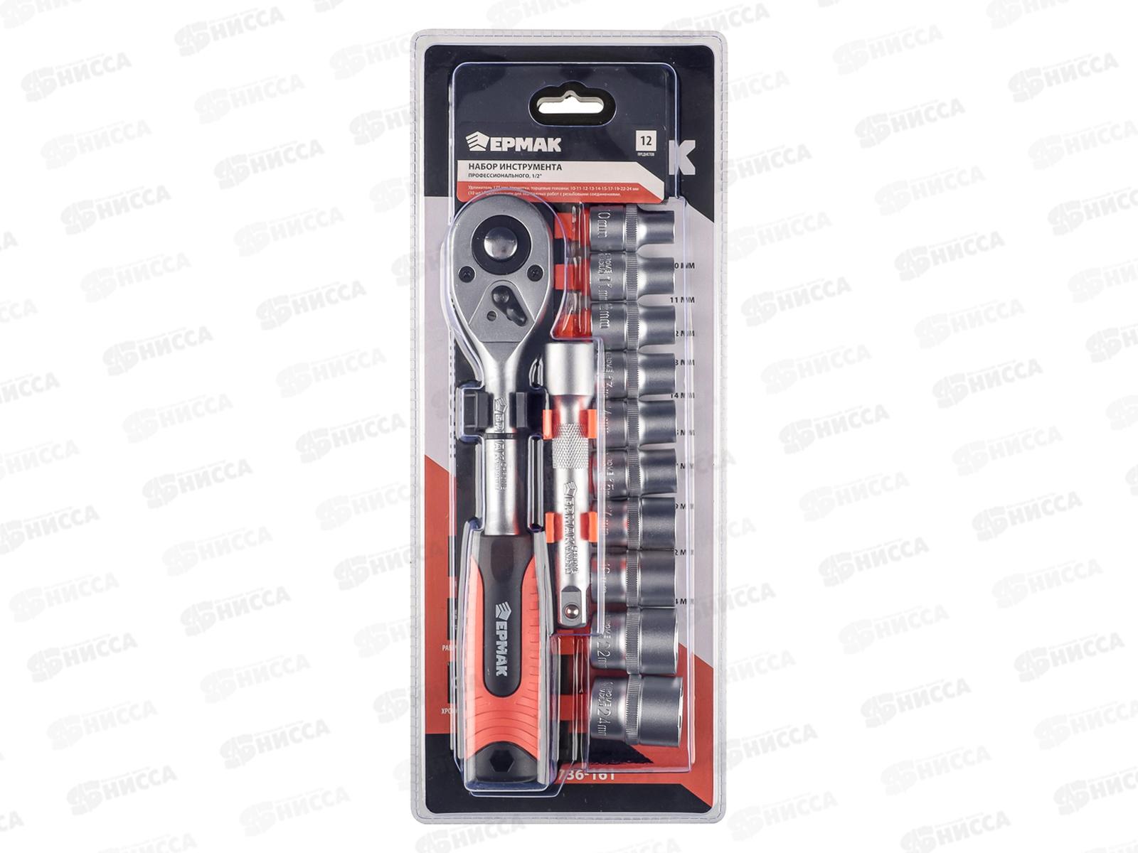 Код:021579; Набор профессионального инструмента 12 предметов ЕРМАК 1/2" 736-161 г