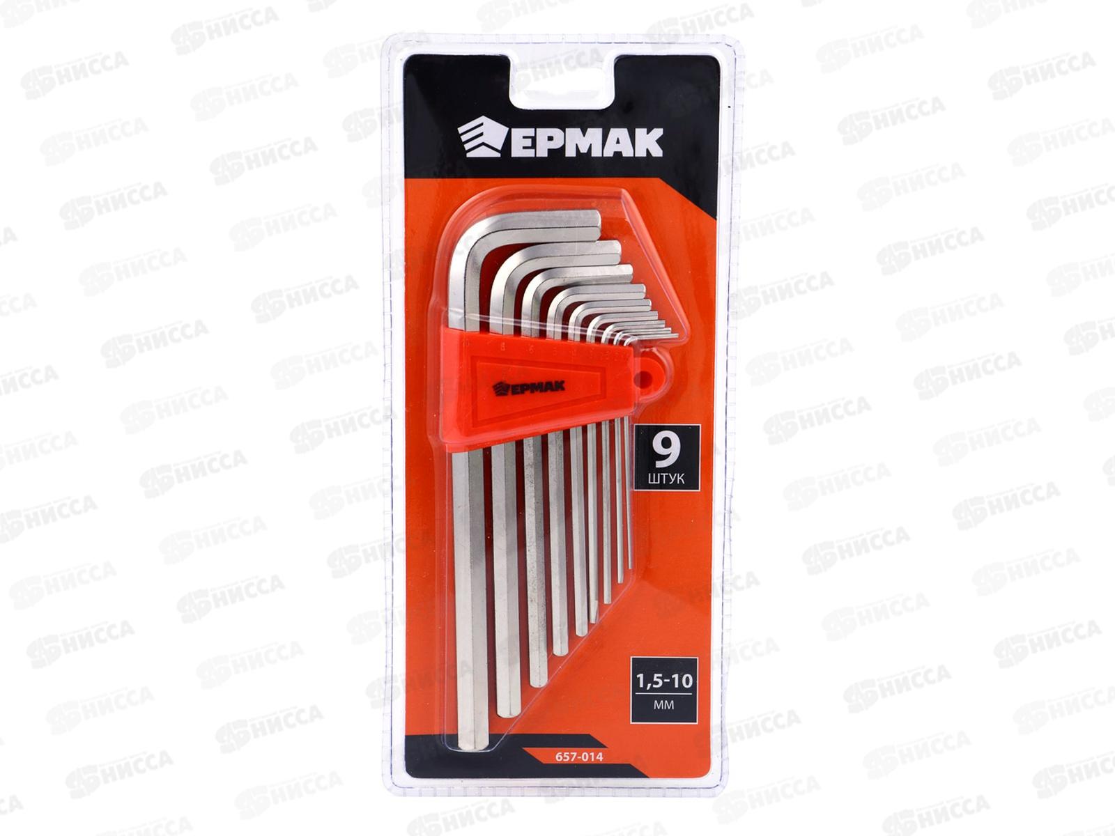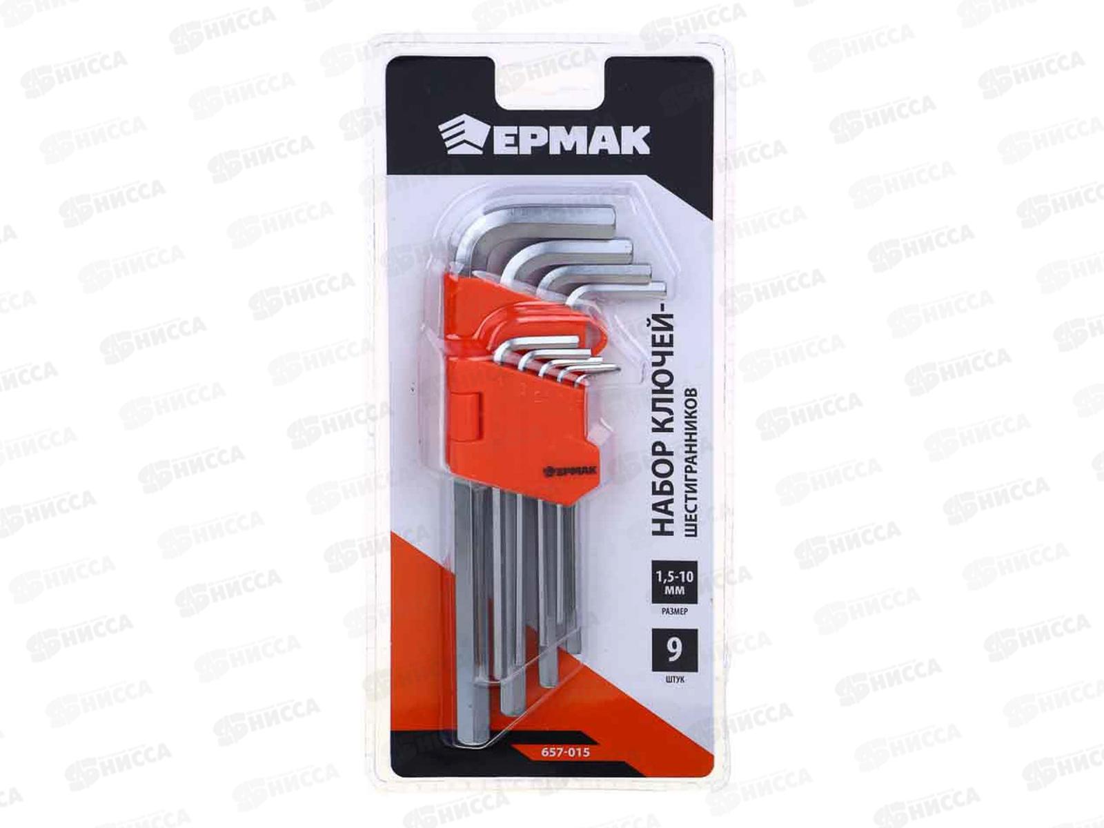 Код:025699; Набор ключей-шестигранников ЕРМАК 1,5-10мм, с шаром, удлиненные, 9шт (015)г 657-015