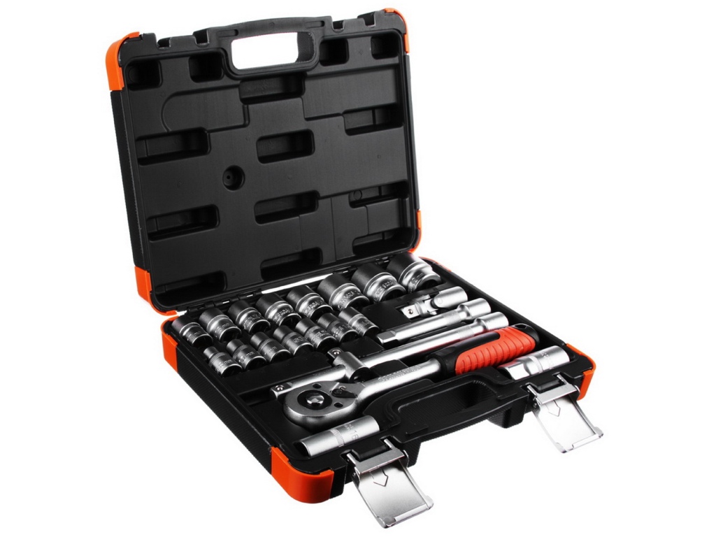 Набор профессиональный, универсальный ЕРМАК. В комплект входят головки торцевые 1/2": 10-11-12-13-14-15-16-17-19-21-22-24-27-30-32мм (17шт.), голо...