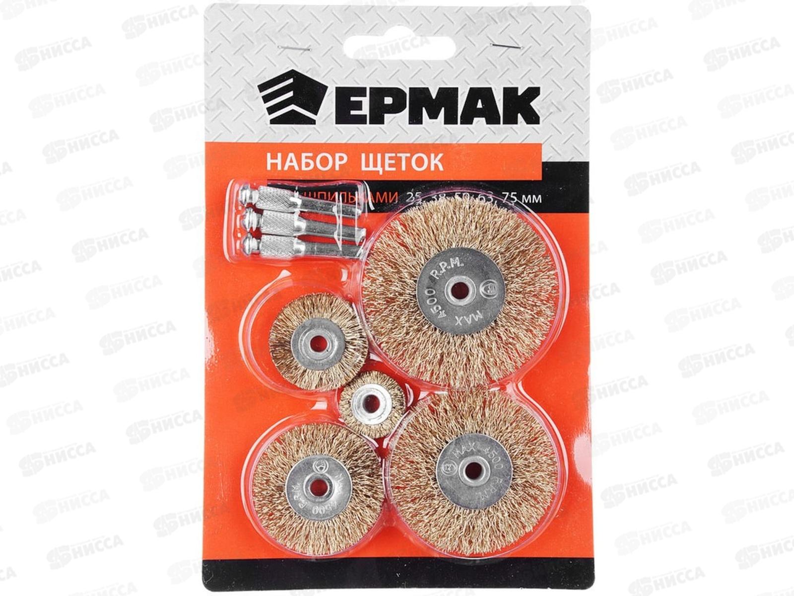 Код:056470; Набор щеток металлических со шпилькой 5предметов (25,38,50,63,75мм-плоские) ЕРМАК 656-034 г