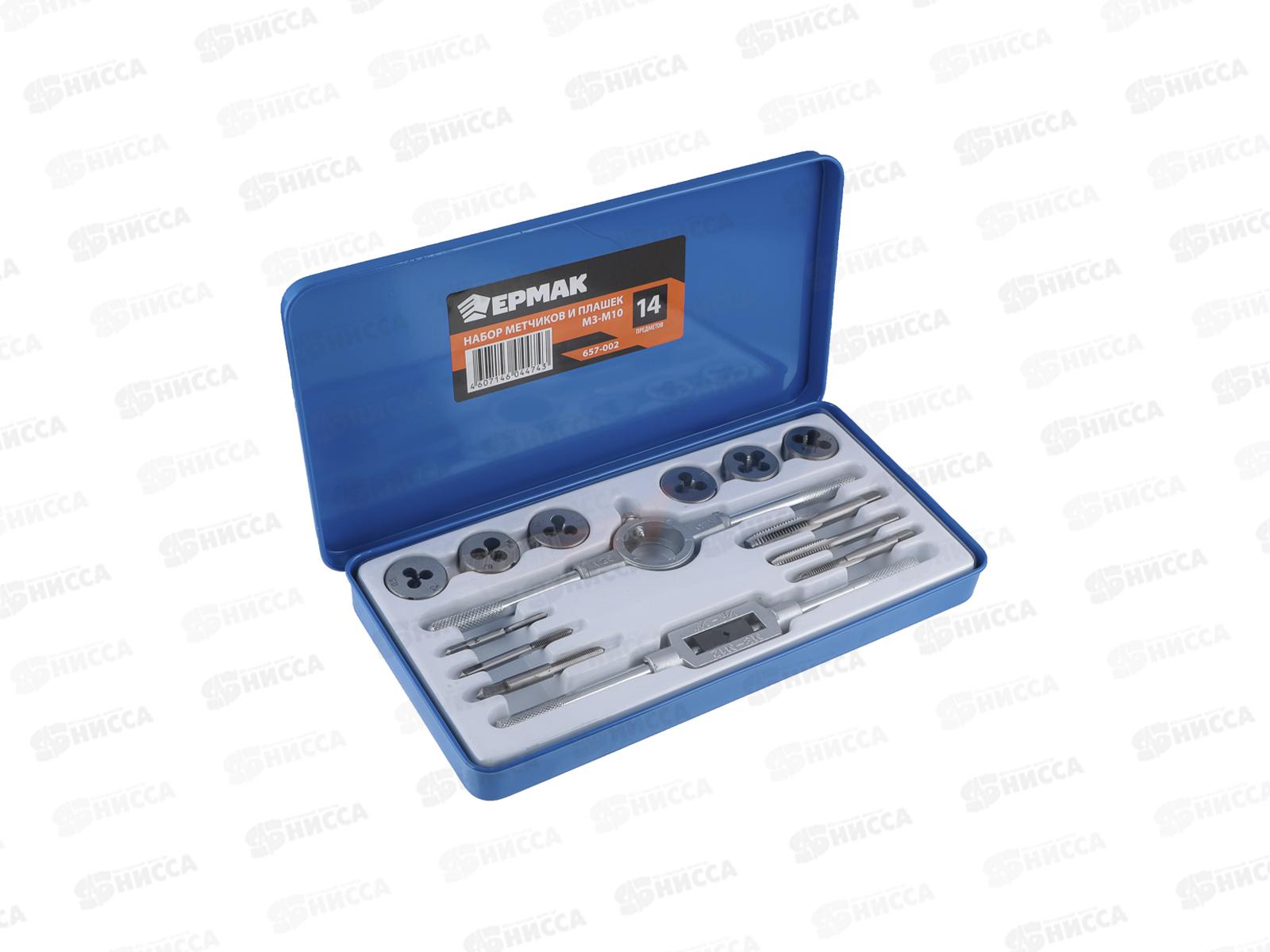 Код:098530; Набор метчиков и плашек 14предмета. ЕРМАК М3-М10 657-002 г