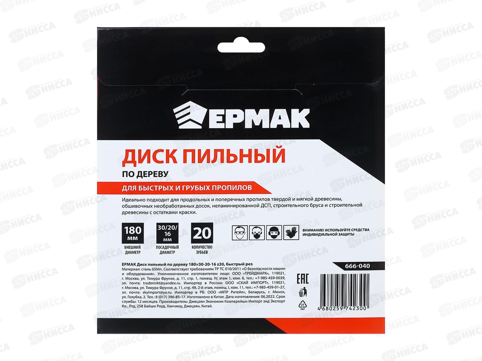 Диск пильный по дереву 180*30-20-16z20 ЕРМАК 666-040 г