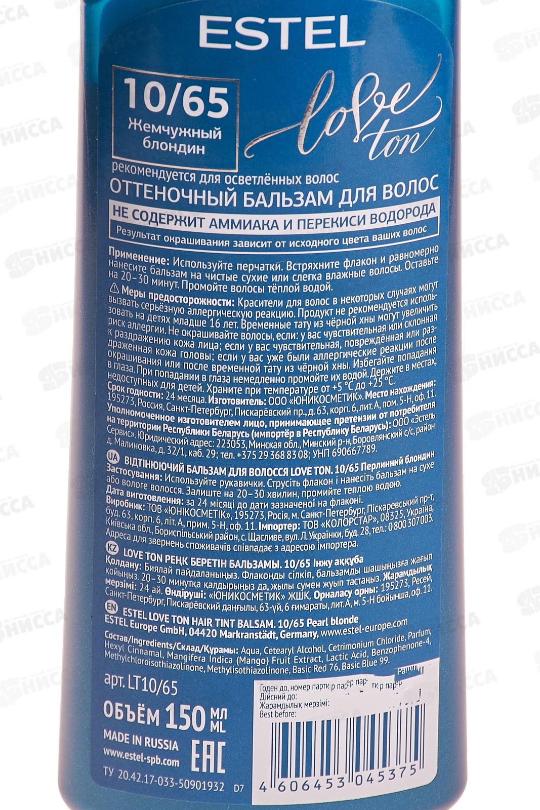 ЭСТЕЛЬ LOVE TON оттеночный бальзам 10/65 Жемчужный блондин *20