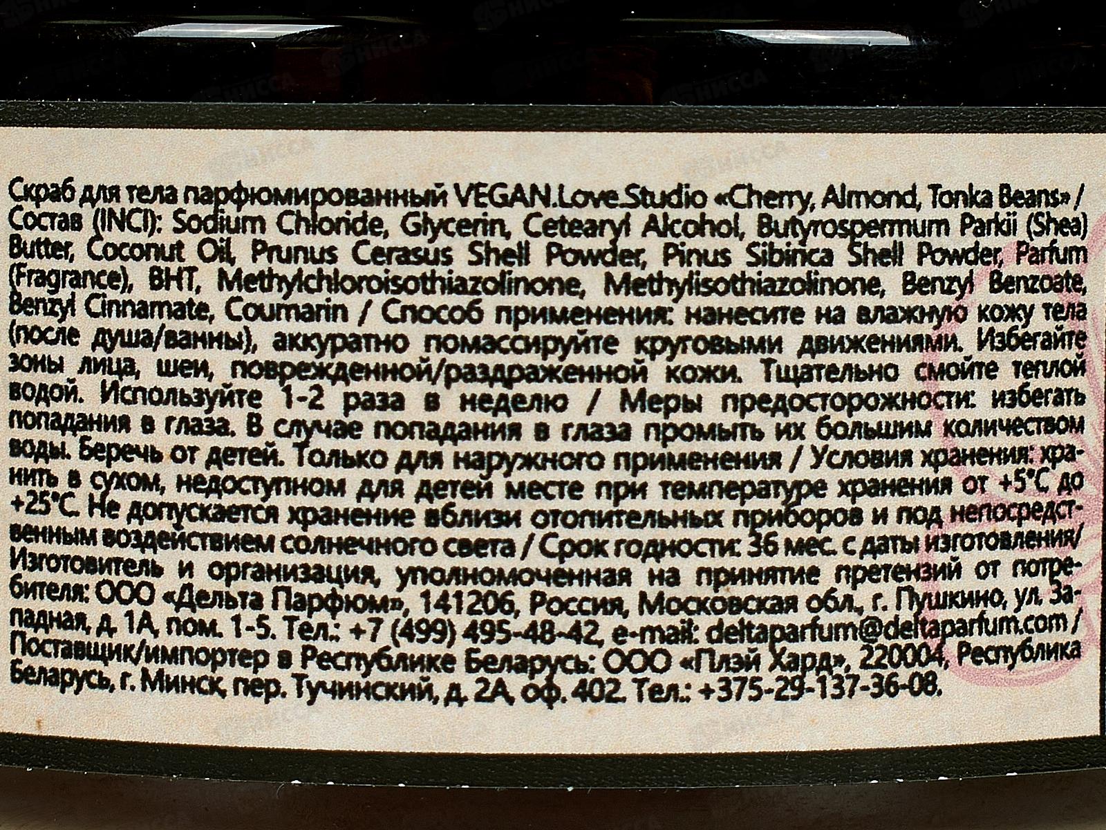 Vegan L.S. Скраб для душа парфюмирован Cherry,Almond,Tonka Beans 300мл