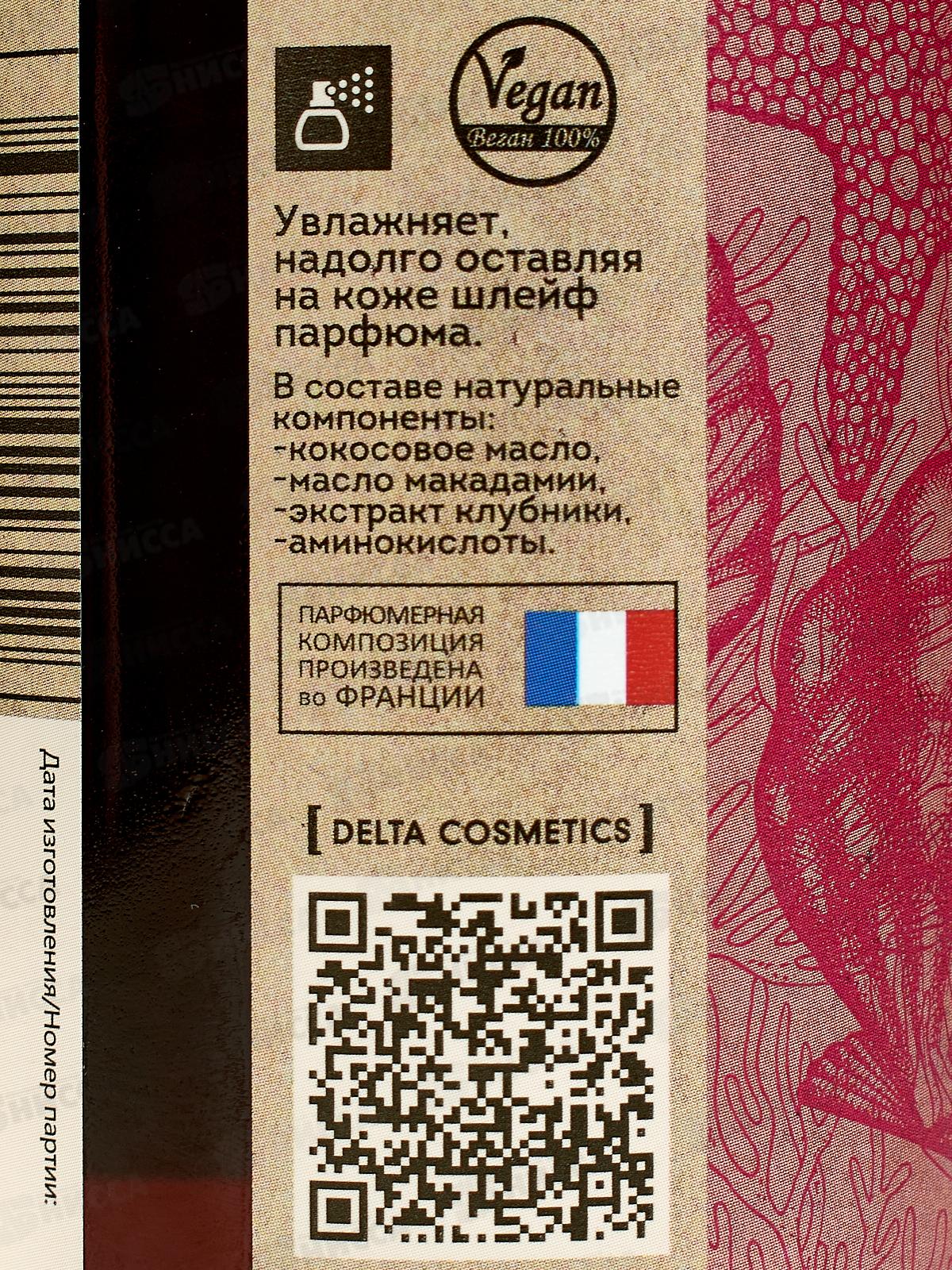 Состав (INCI): Water (Aqua), Sodium Laureth Sulfate (пенообразующий компонент), Cocamidopropyl Betaine (мягкий ПАВ из кокосового масла), Sodium Chloride (натуральный загуститель), Hydroxyethylurea (эффективный увлажнитель), Cocamide DEA (мягкий ПАВ из кокосового масла), Decyl Glucoside (ПАВ растительного происхождения), Macadamia Nut Oil Peg-8 Esters (масло макадамии), NMF (Sodium PCA, Glucose, Urea, Glutamic Acid, Lysine, Glycine, Allantoin), Fragaria vesca (Strawberry) Fruit Extract (экстракт клубники), Coconut Oil Glycereth-8 Esters (масло кокоса), Glycerin (увлажнитель из растительного сырья), Parfum (Fragrance), Citric Acid (лимонная кислота), Tetrasodium Glutamate Diacetate, Methylchloroisothiazolinone, Methylisothia- zolinone, Hydroxycitronellal, Limonene.