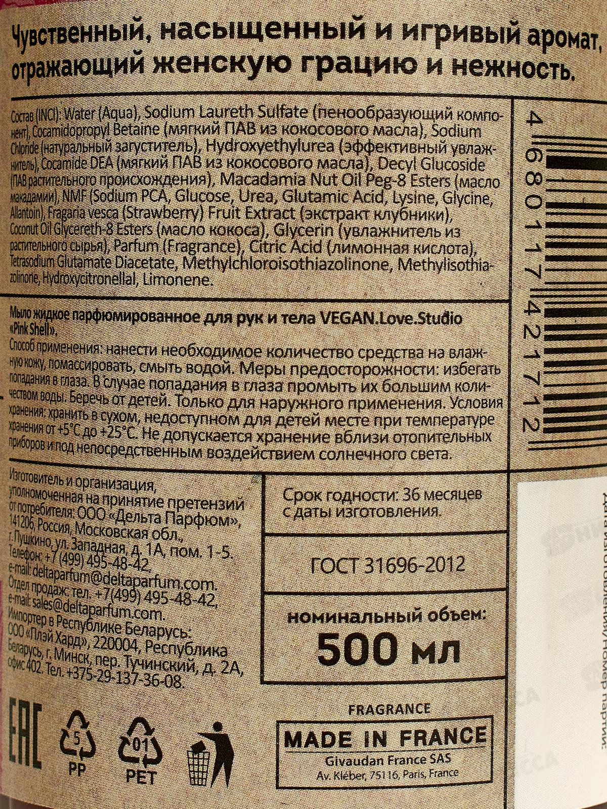 Vegan L.S. Мыло для рук и тела парфюм Pink Shell 500мл *12