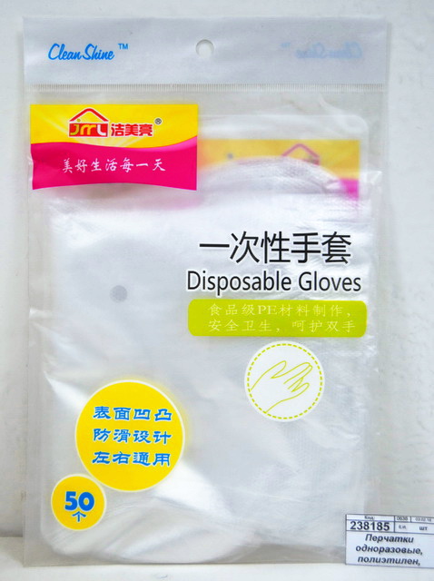 Код:238185; Перчатки одноразовые, полиэтилен, l=29см, набор 50шт, AL-4597 *300