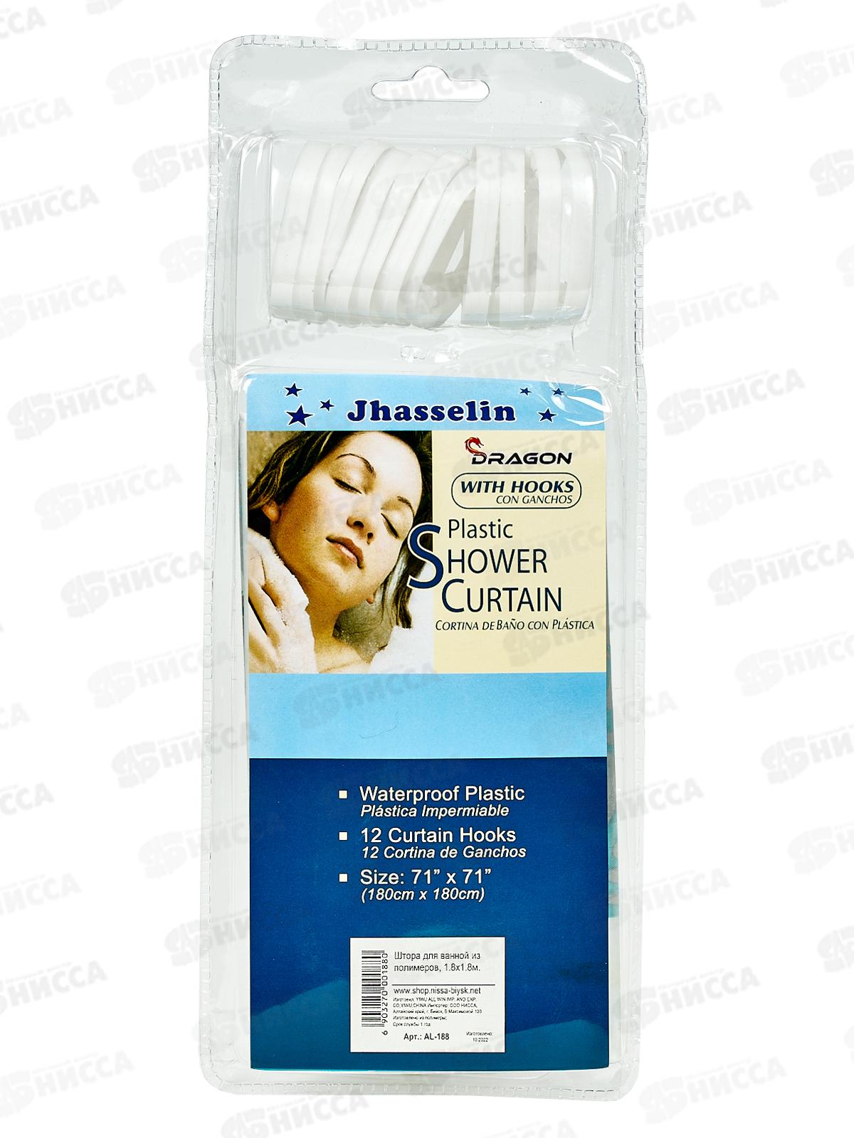 Характеристики:Артикул: AL-188Тип товара: Штора для ваннойВид: водонепроницаемаяРазмер: 180х180 смКомплектация: 12 колецМатериал шторы: ПВХЦвет: в асс...