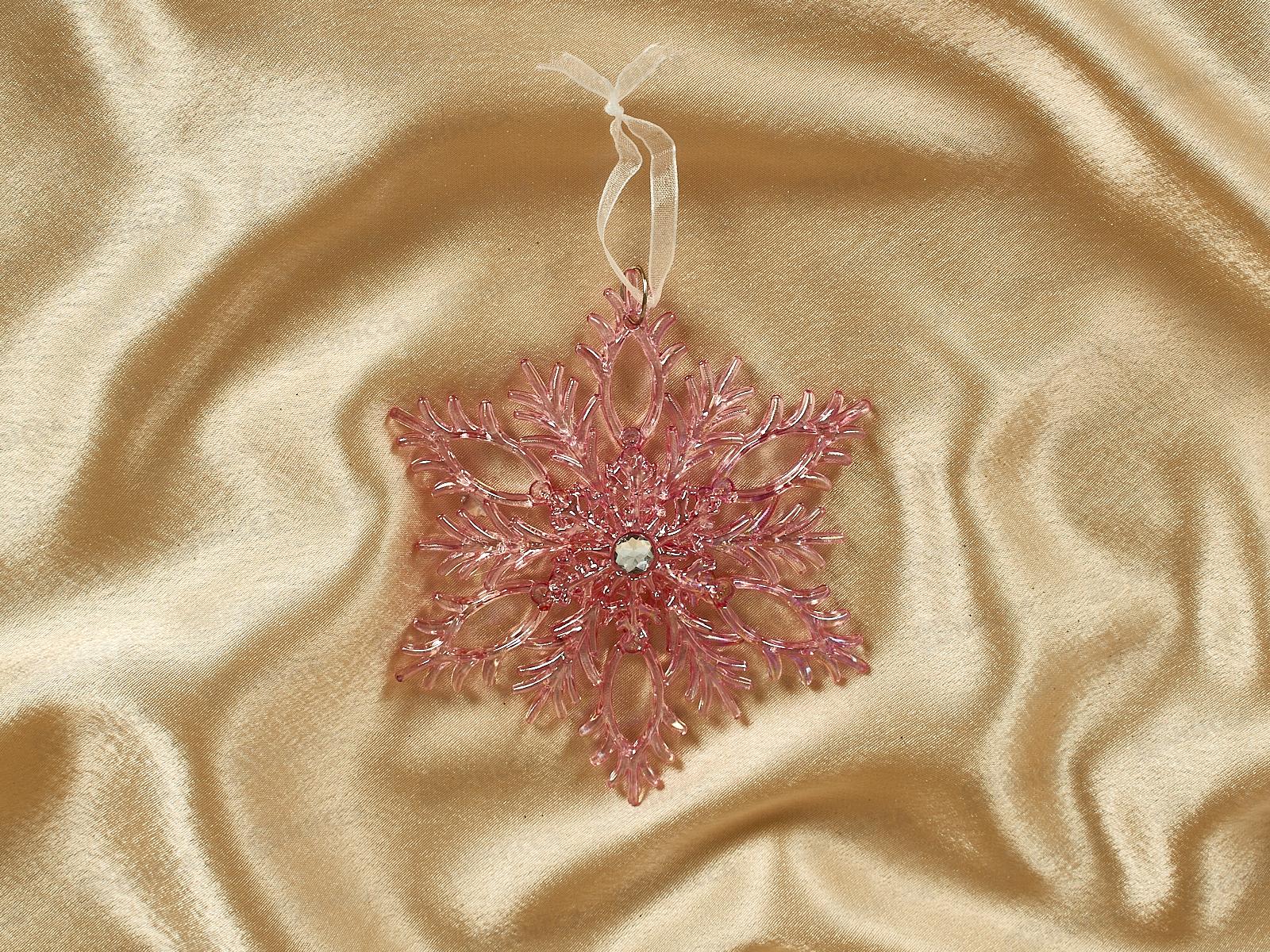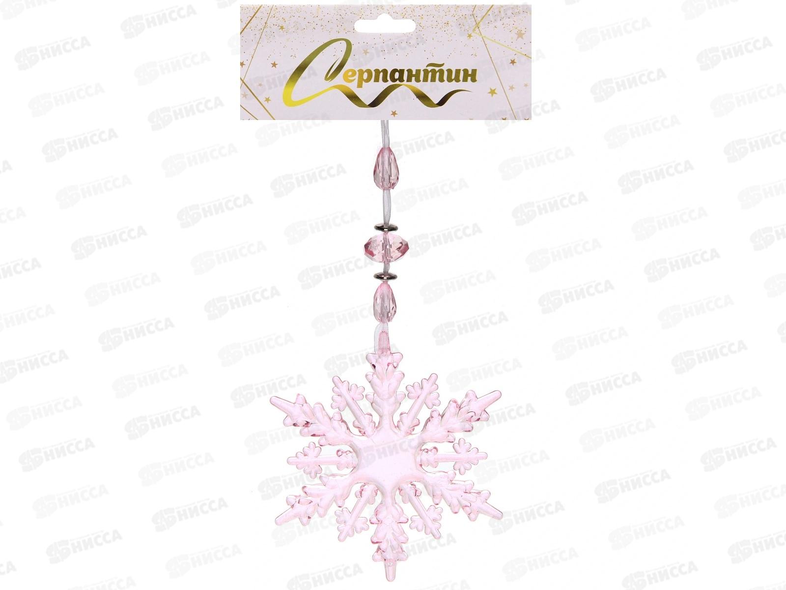 Код:586664; Подвеска "Ажурная снежинка" 16см розовый 259-245