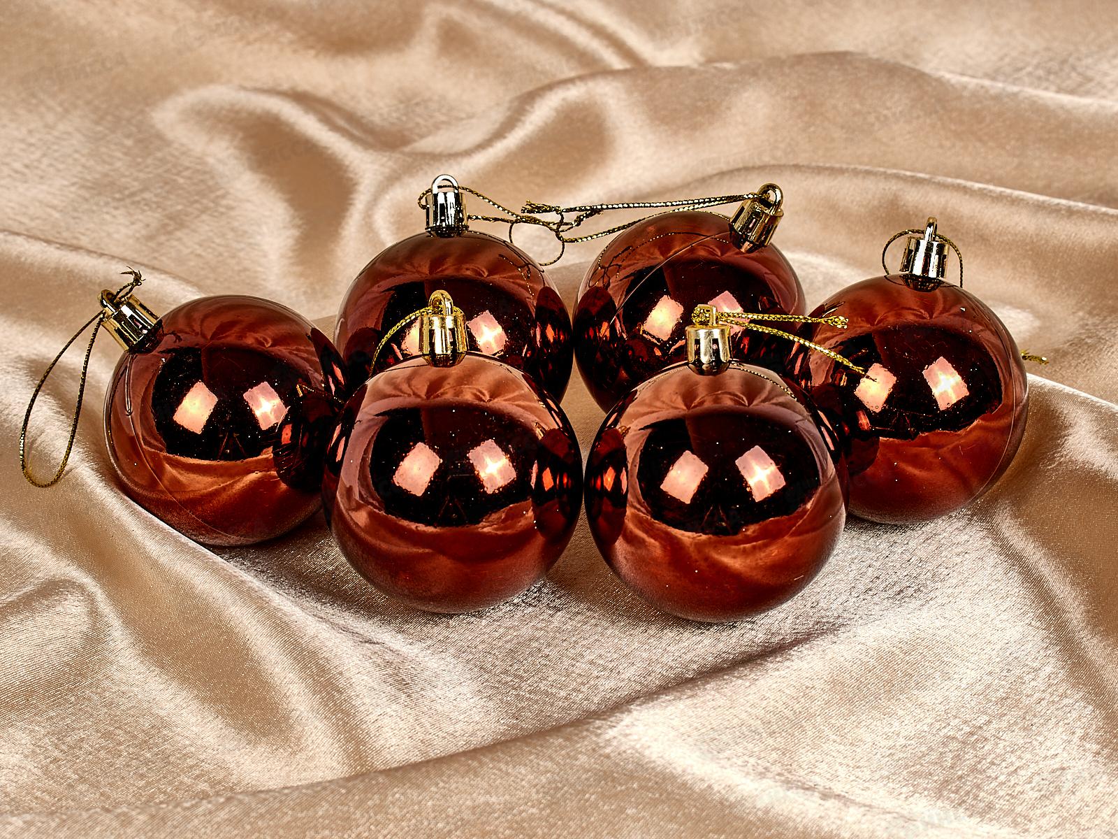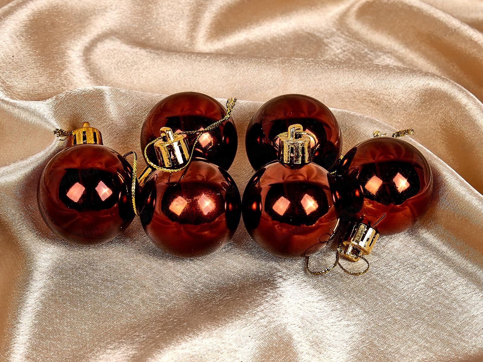 Код:458982; Набор елочных шаров 6шт "Глянец" 6см шоколад 201-1712