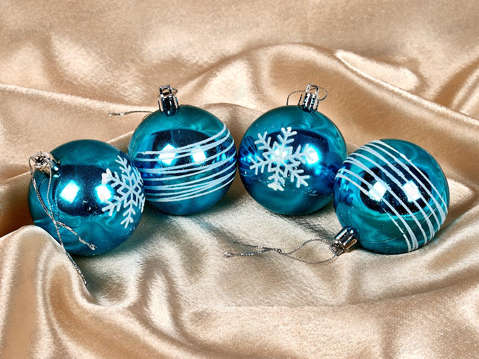 Код:458967; Набор елочных шаров 4шт "Снежные нити" 6см голубой/белый 201-1627