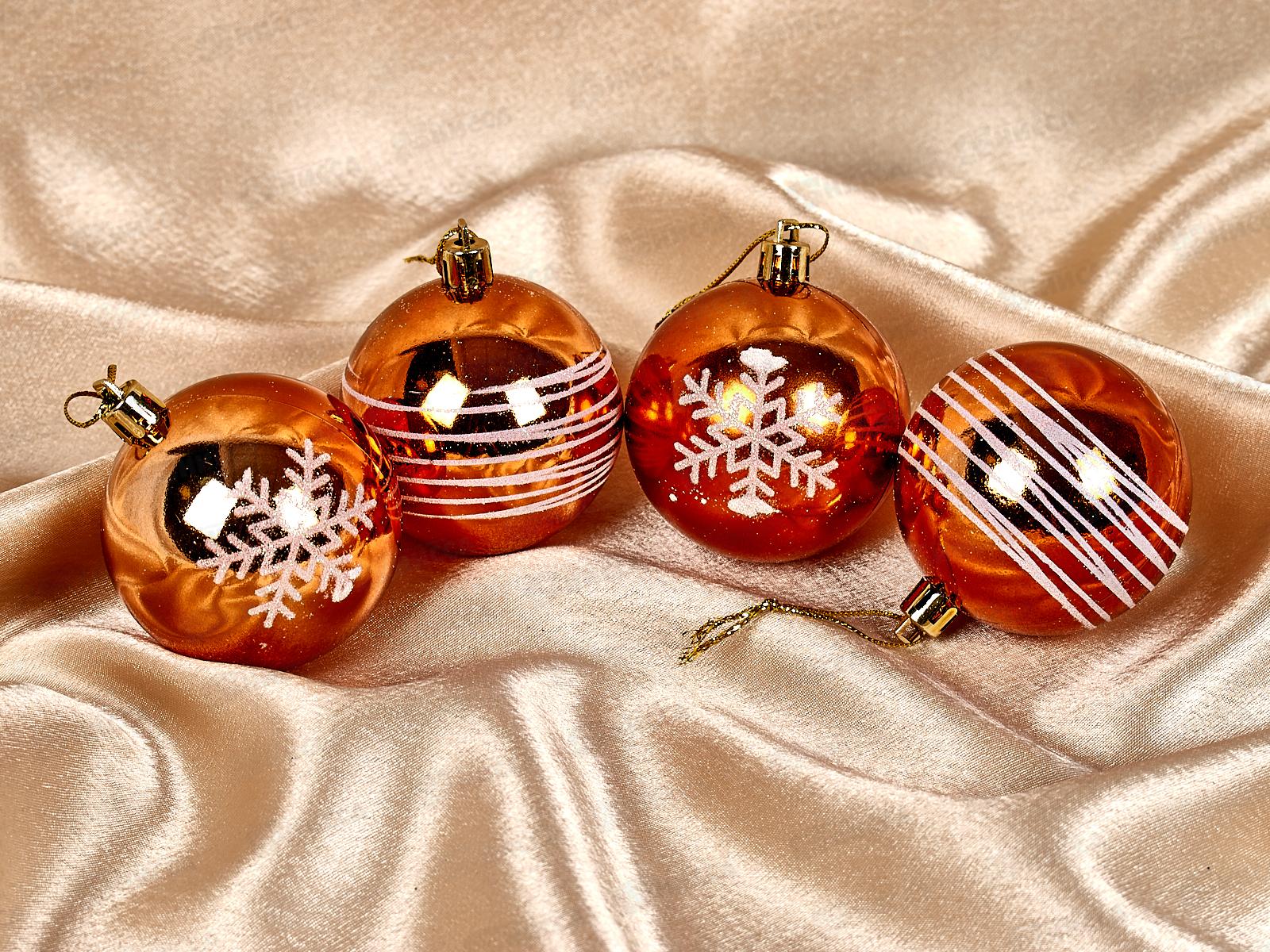 Код:458969; Набор елочных шаров 4шт "Снежные нити" 6см оранж/белый 201-1628