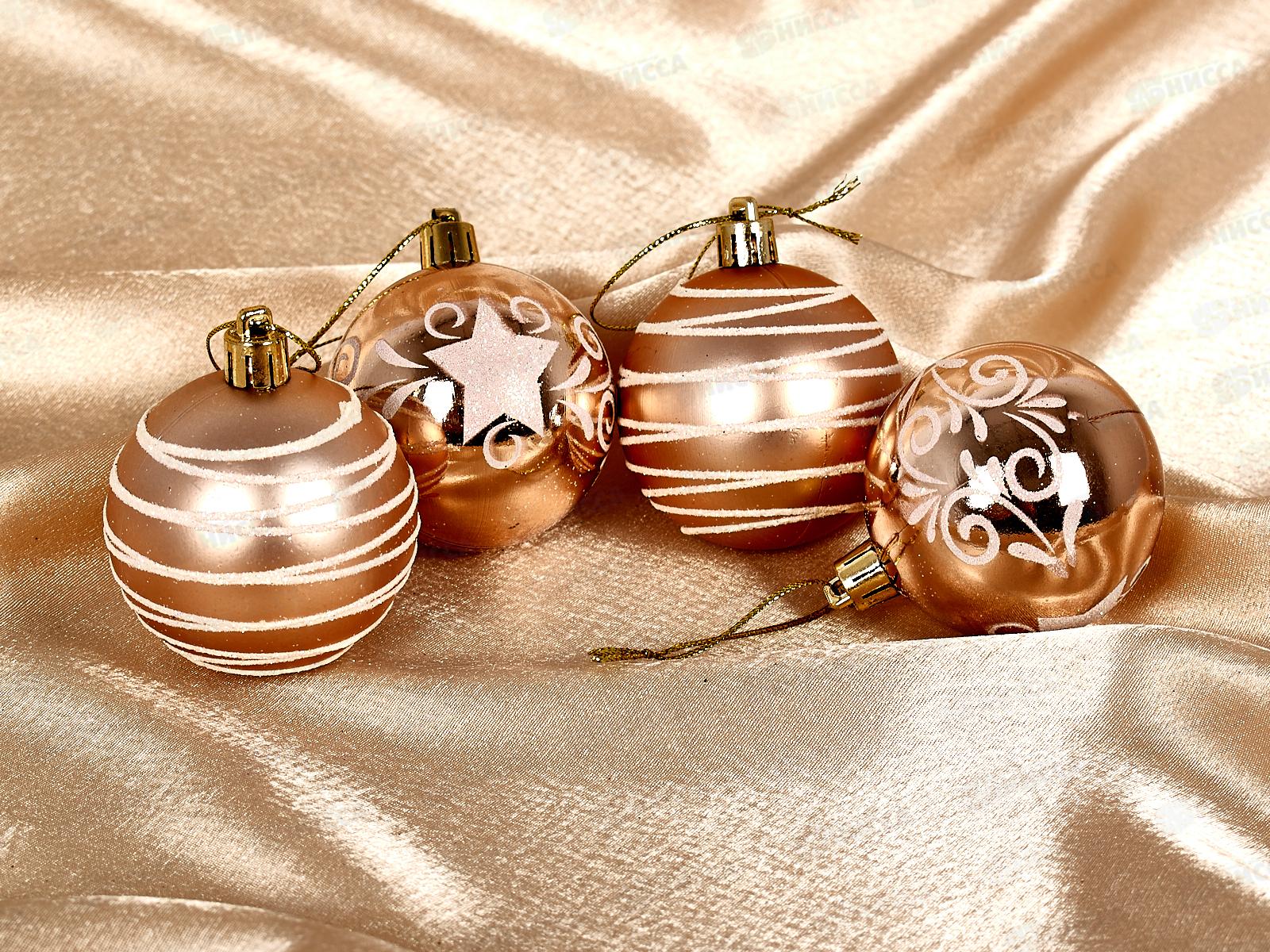 Код:458916; Набор елочных шаров 4шт "Микс фактур" 5см розовое золото 201-0828