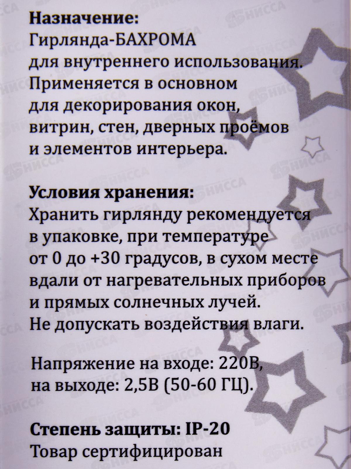 Гирлянда 1,5м*50см Бахрома 48LED белый 196-078