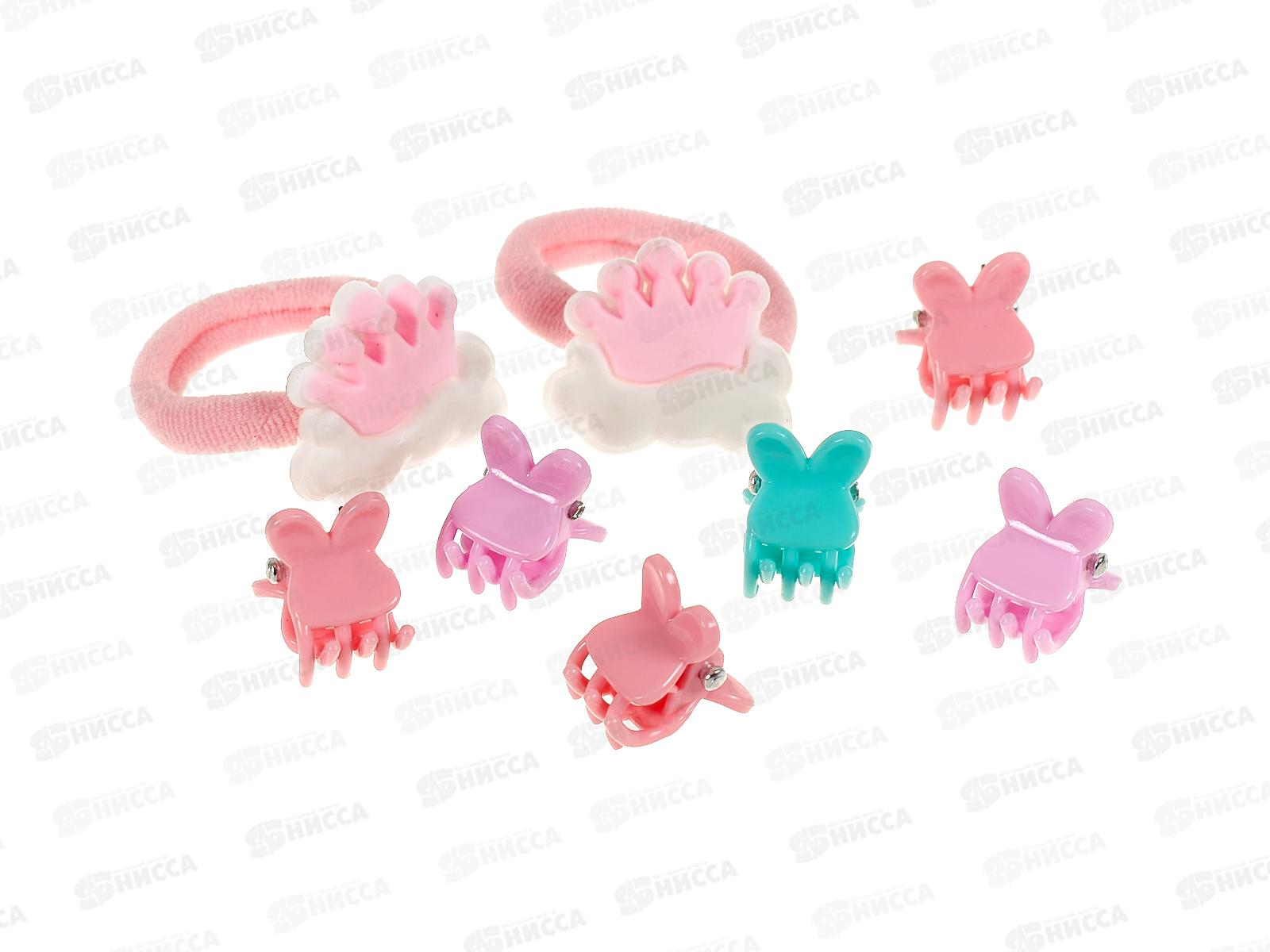 Состав набора: резинка для волос - 2 шт, краб для волос - 6 шт