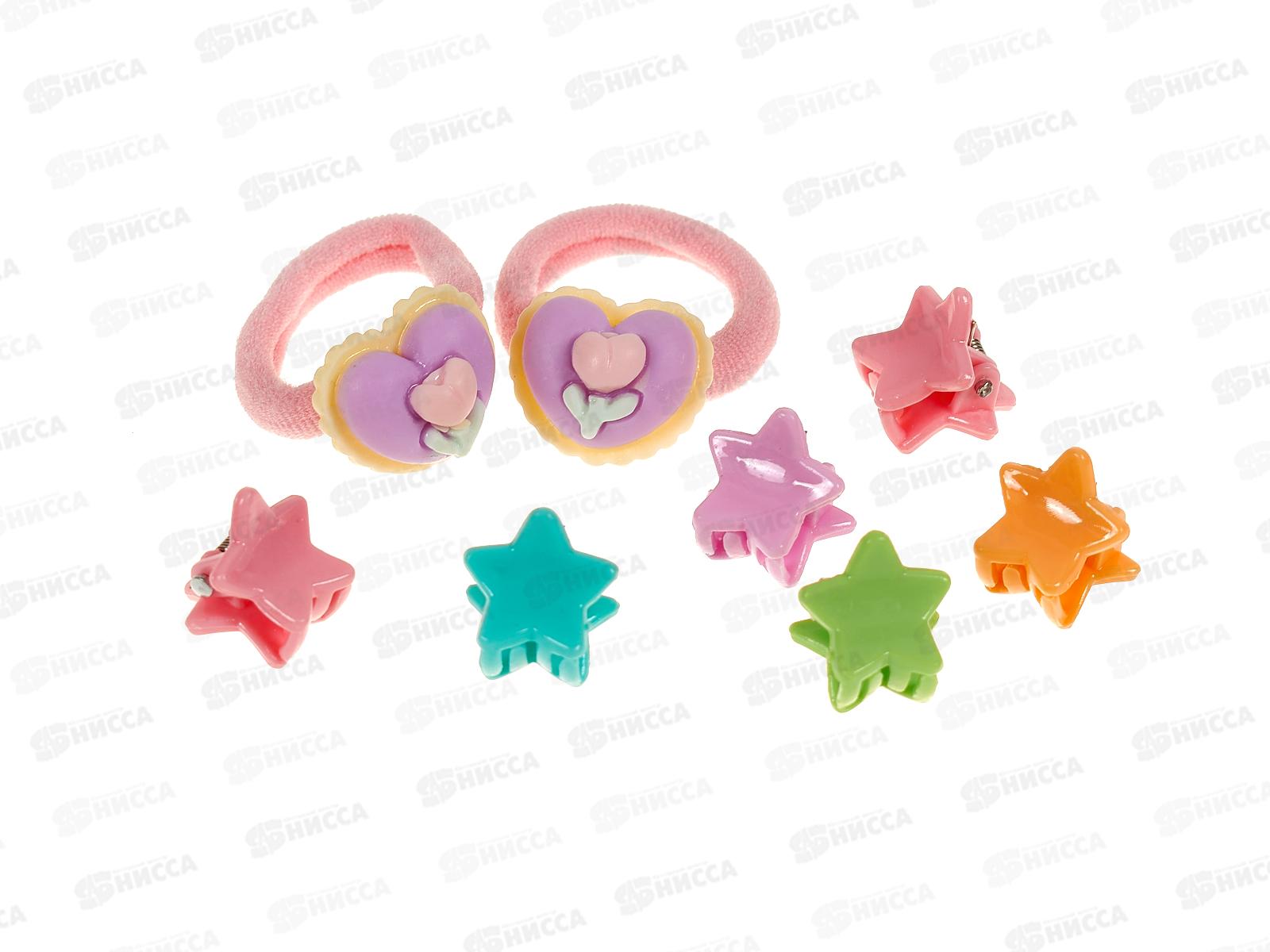 Состав набора: резинка для волос - 2 шт, краб для волос - 6 шт
