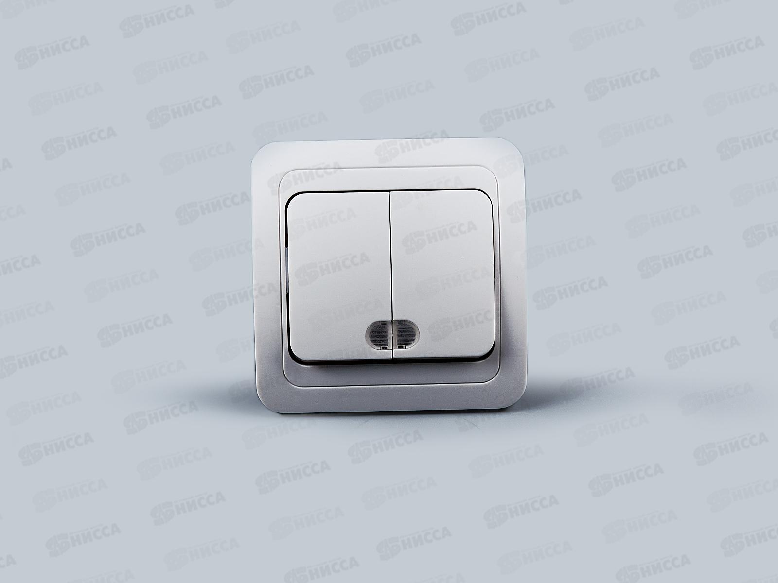 Выключатель скрытой установки 2клавишный Прогресс SLIM, с подсветкой, белый *10/200