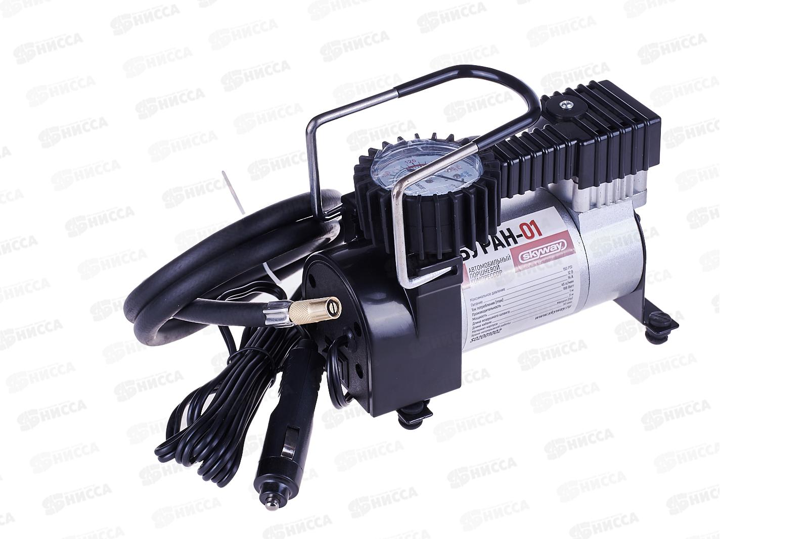 Код:464335; Компрессор автомобильный металлический 40л/мин в прикуриватель SKYWAY БУРАН-01N Малые габариты, сумка, фиксатор давления, 10атм, S