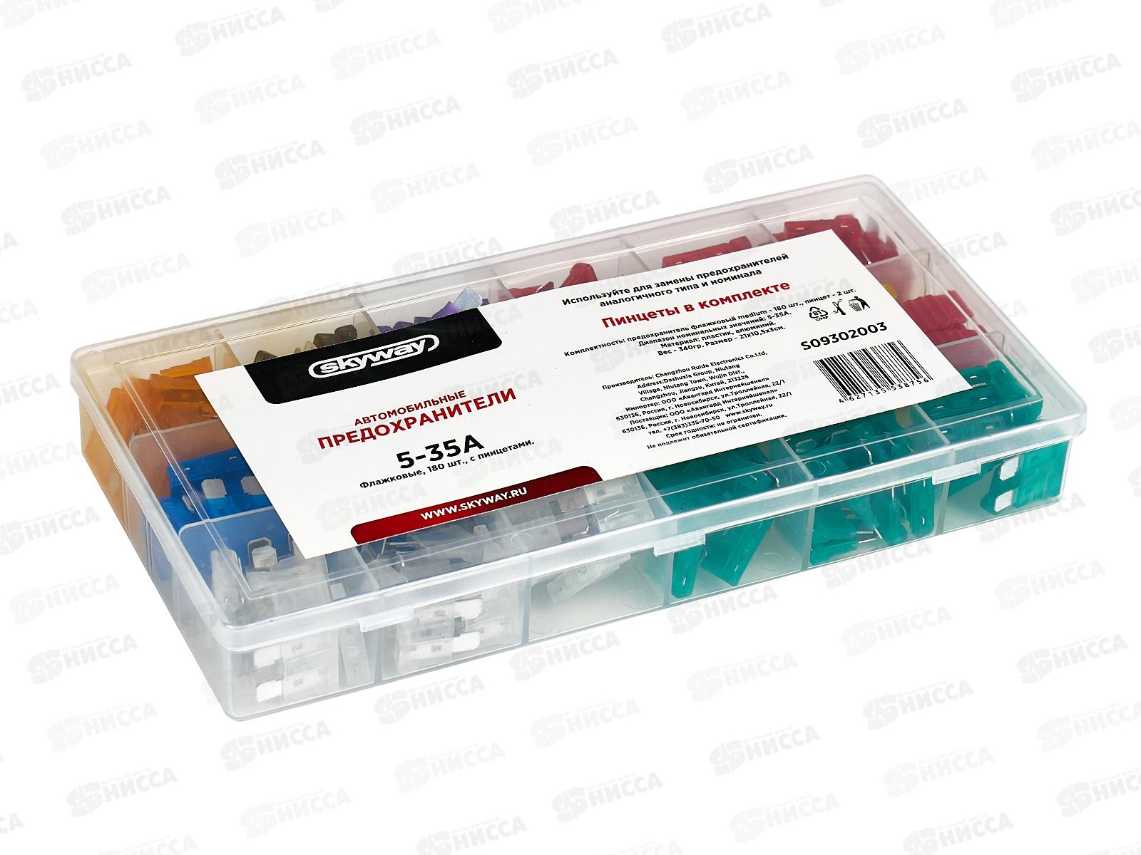 Предохранитель флажковый MEDIUM набор 180шт 5-35А в пластиковой коробке SKYWAY- - набор пластмассовых предохранителей, предназначены для защиты бортов...