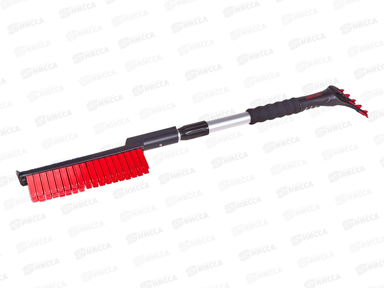 Код:587449; Щетка для снега телескопическая 75-100см со скребком силиконовая щетина, ручка soft touch