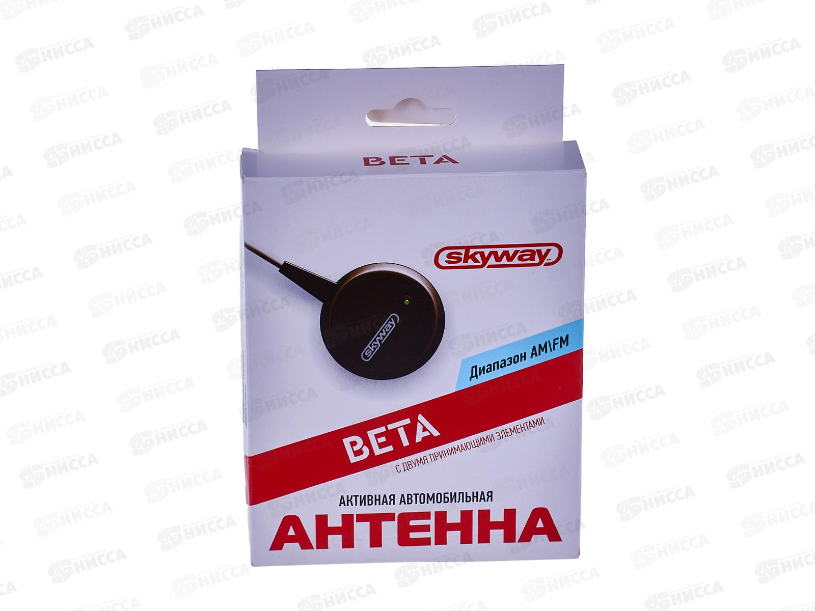 Антенна AM/FM/УКВ активная внутрисалонная SKYWAY BETA круглая тонкое полотно два уса кабель 2,2м Черный, S00203002