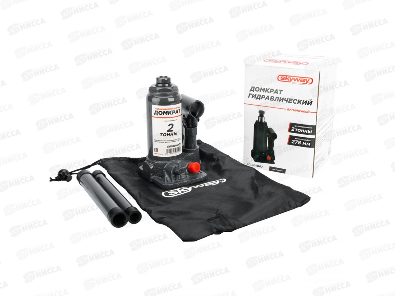 Домкрат гидравлический бутылочный SKYWAY с клапаном 2т h 148-278мм в коробке+сумка