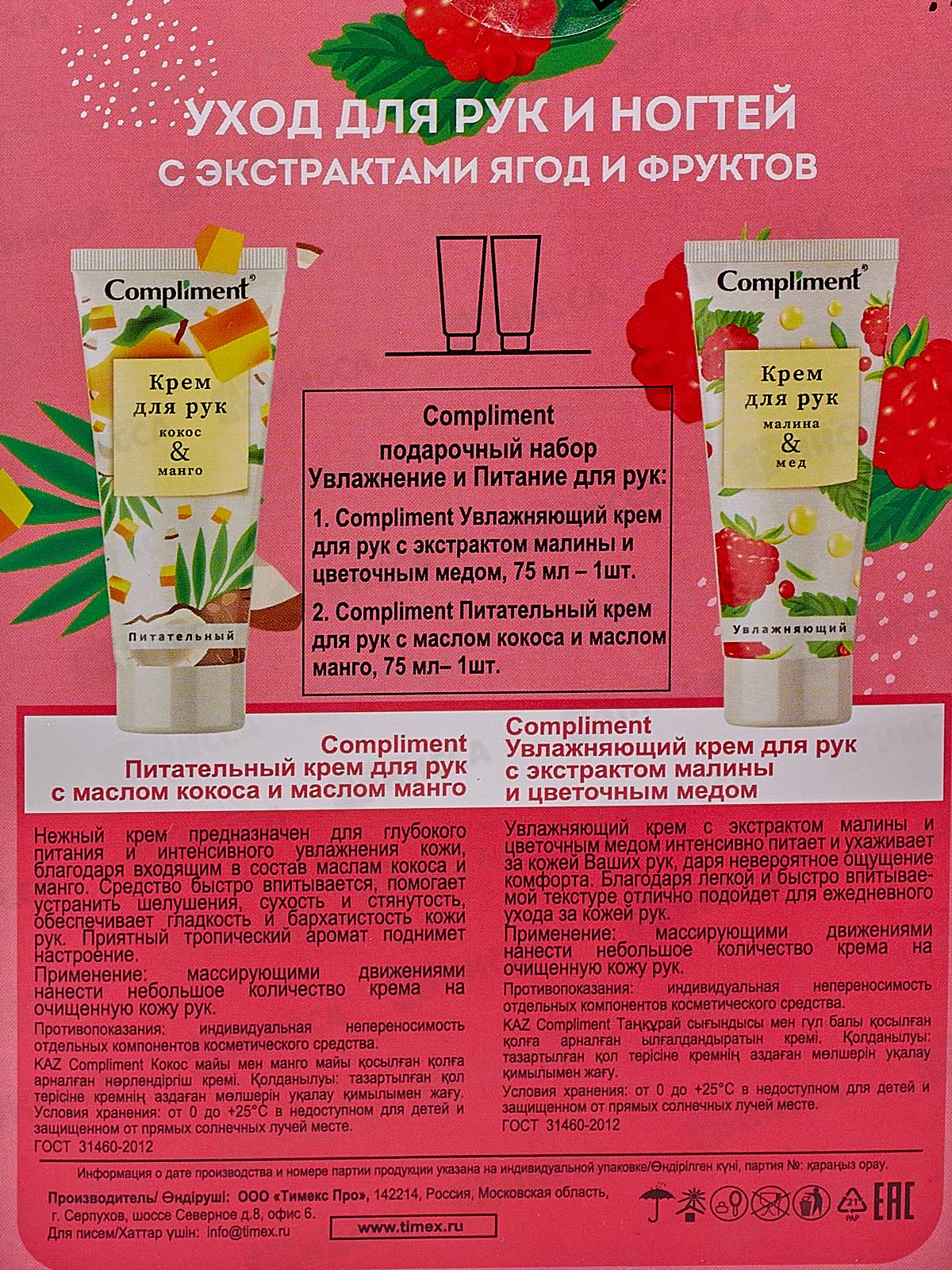 Compliment Подарочный Набор №2040 Крем Увлажнение и питание 75мл для рук *12
