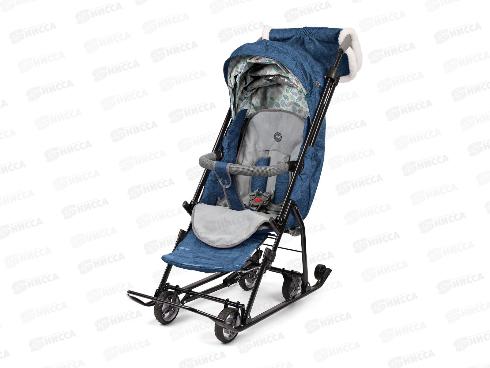 Санки-коляска "Наши детки" НДТ6Н/2 синий с листочками