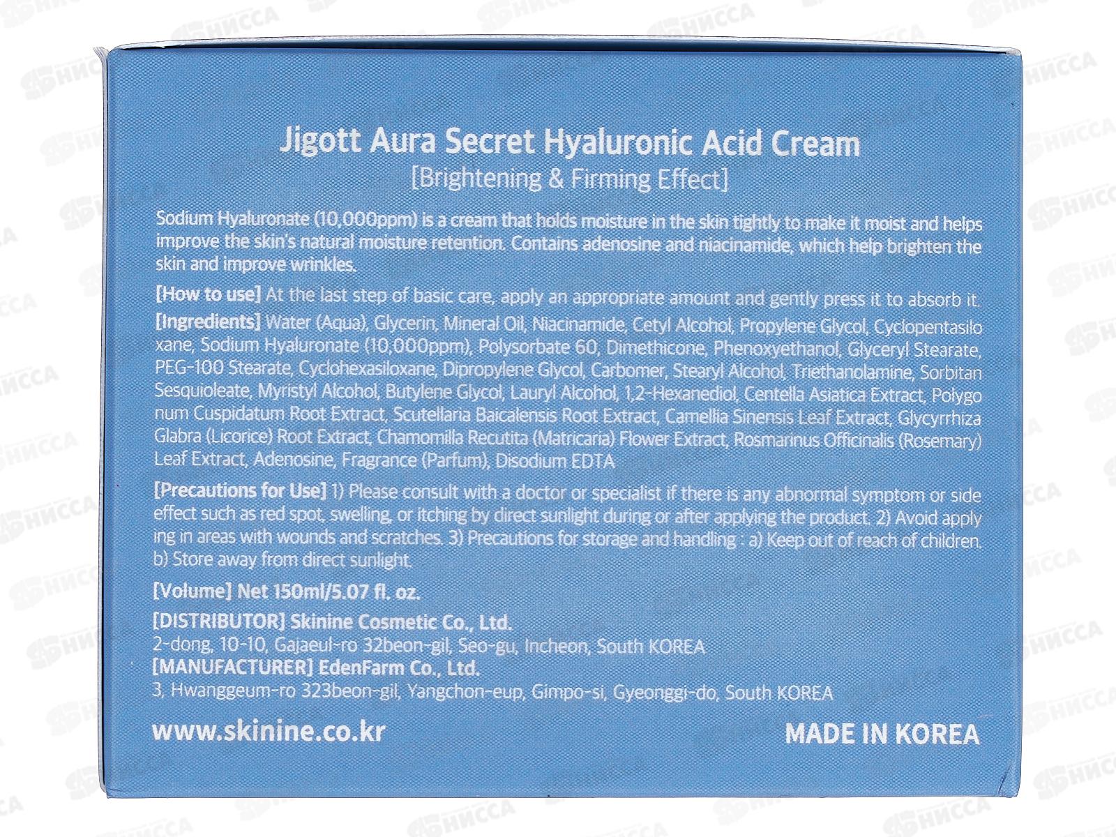 JIGOTT A.S. Крем для лица увлаж,питат Гиалурон кислота 150мл *75