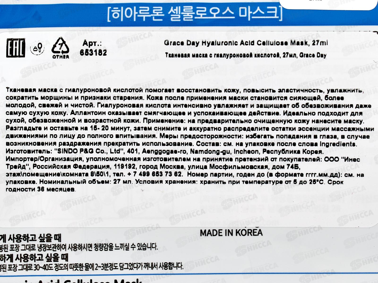 Grace Day Маска тканевая с гиалуроновой кислотой 27мл 653182