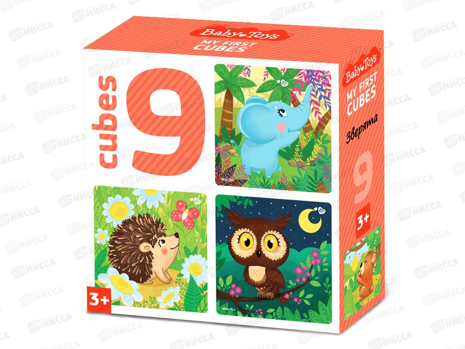 Код:541607; Кубики "Зверята" (без обклейки) 9шт, 05494 Baby Toys