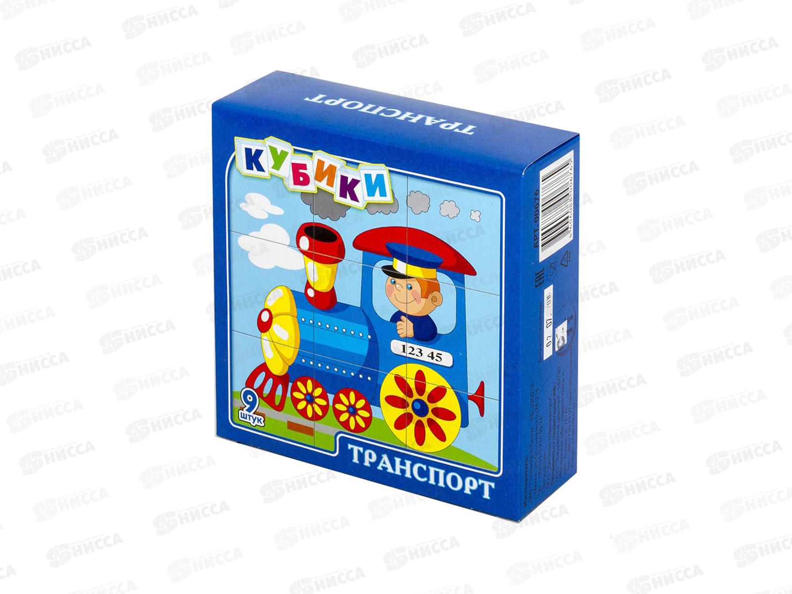 Код:607763; Кубики "Транспорт" 9шт, пластмассовые, 00676