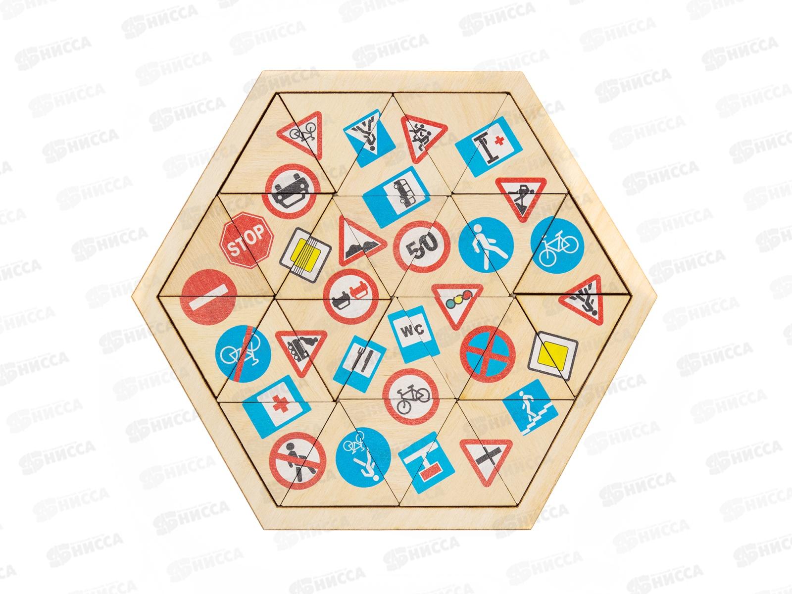 Код:558021; Пазл деревянный "Дорожные знаки" 00782 (Занимательные треугольники)