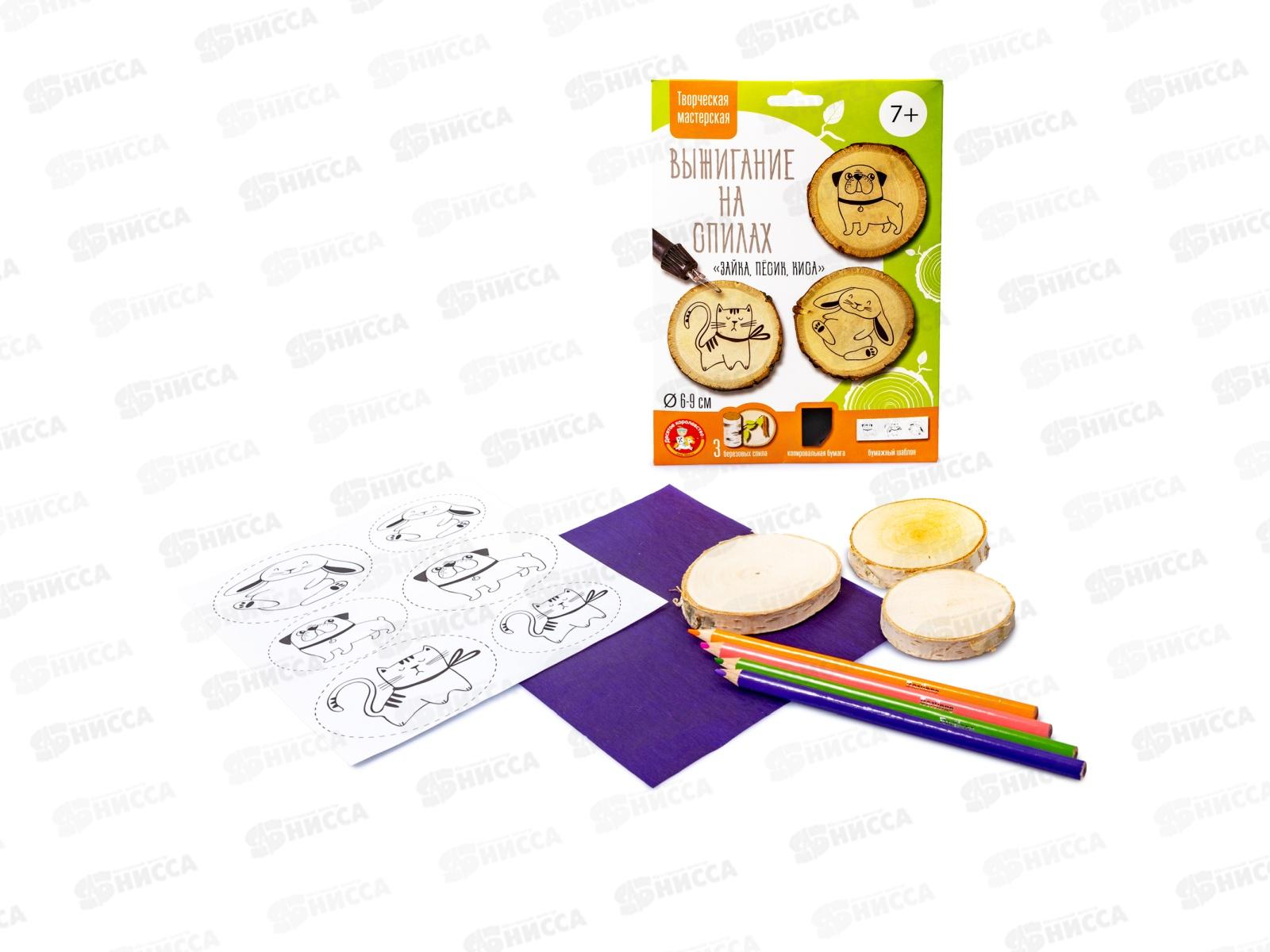 Выжигание на спилах "Зайка, Песик, Киса" (спил малый) 04801