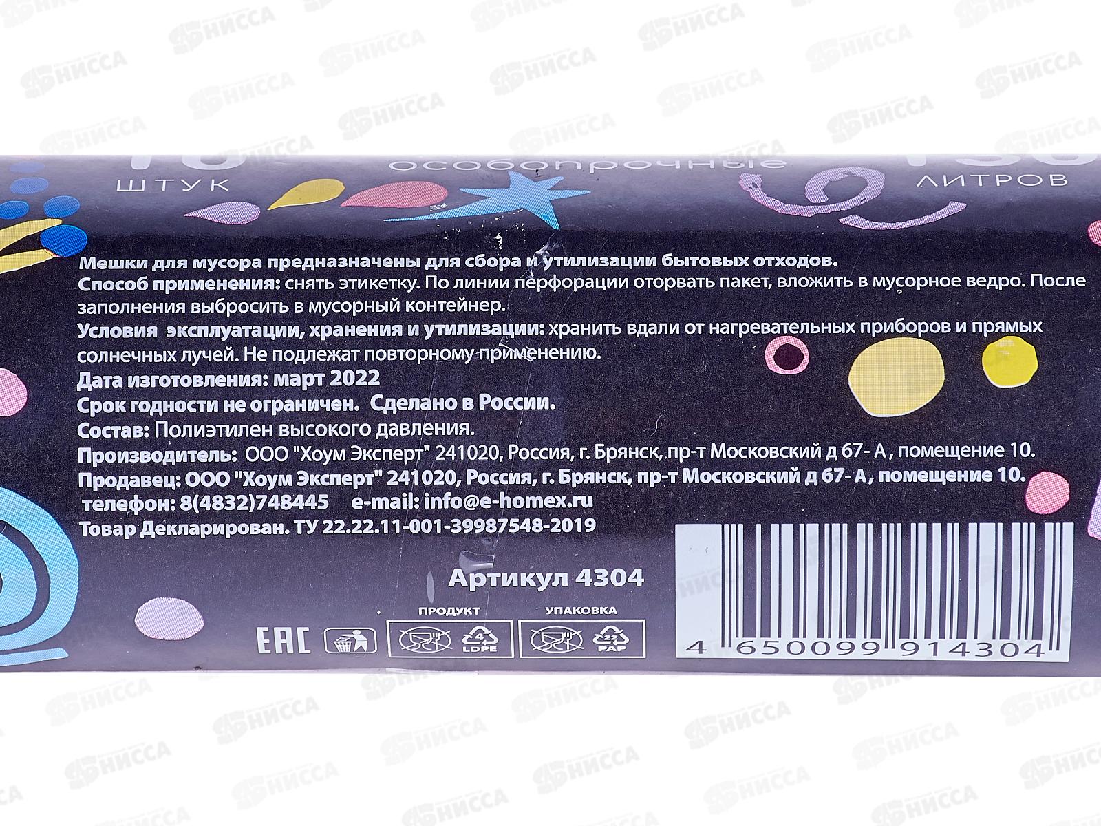 HOMEX пакеты для мусора Очень упрямые особопрочный 130л 10шт *20