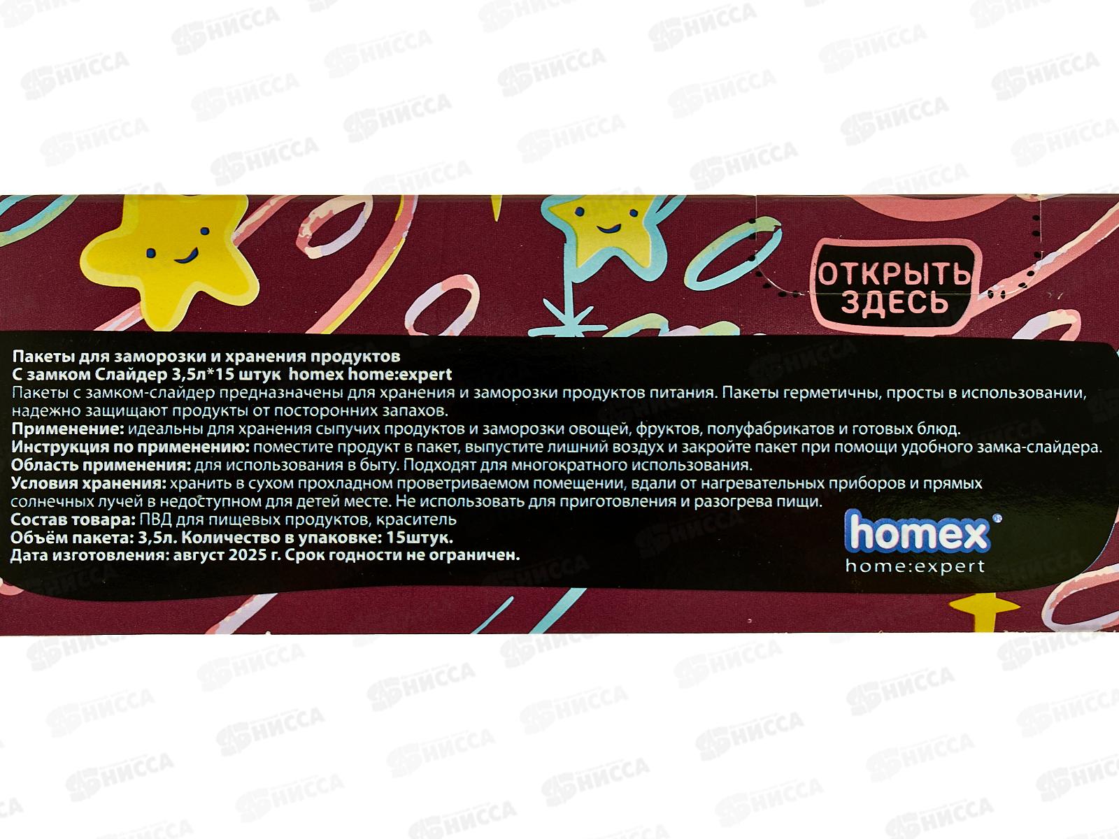 HOMEX Пакеты-слайдеры 3,5л 15шт для замор и хран Очень функциональные