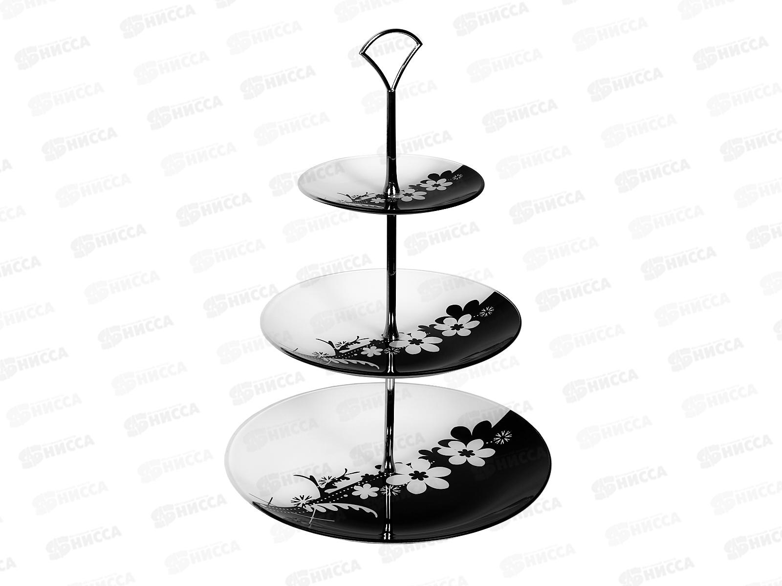 Код:523630; Ваза для фруктов "РОМАШКИ" 3-х ярус. бел/черн. круглая, 164593